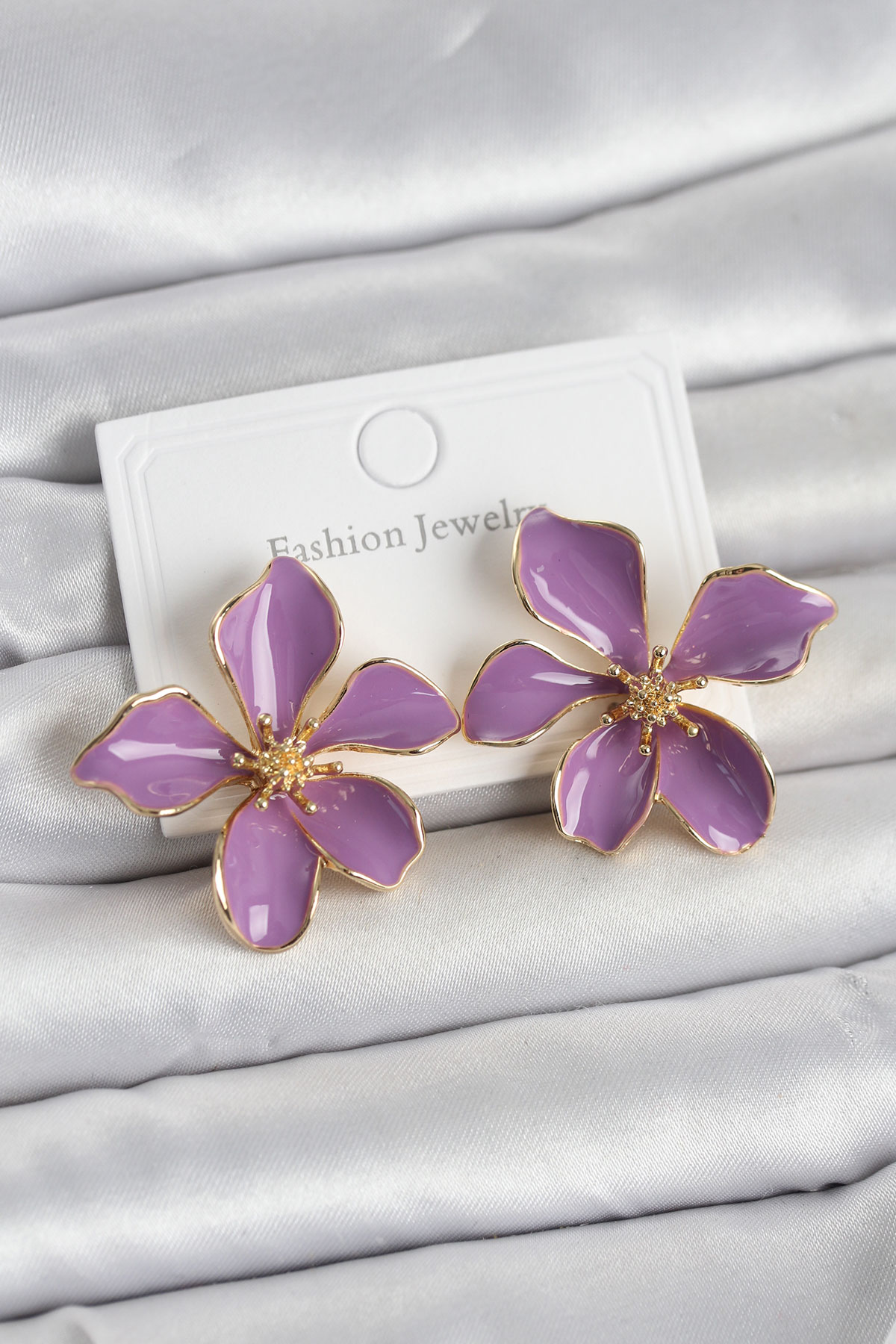 Mor Mineli Çiçek Model Pirinç Kadın Küpe