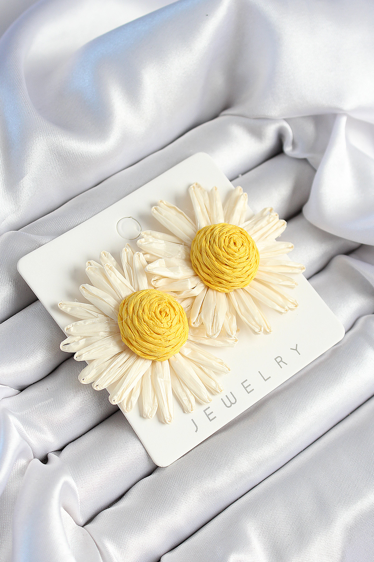 Papatya Model Beyaz Ve Sarı Renk Kadın Küpe