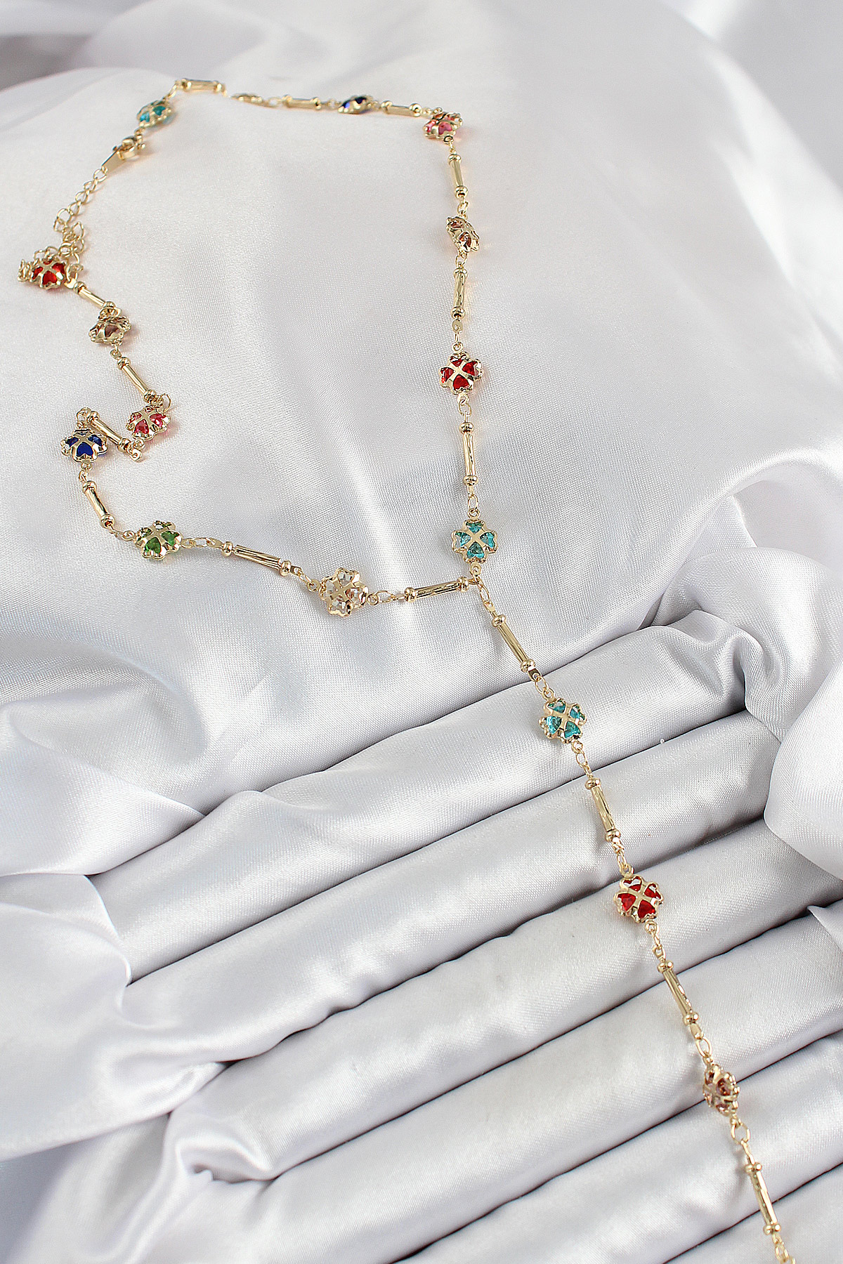 Pirinç Asorti Kalpli Yonca Model Gold Renk Zirkon Taşlı Y Kolye