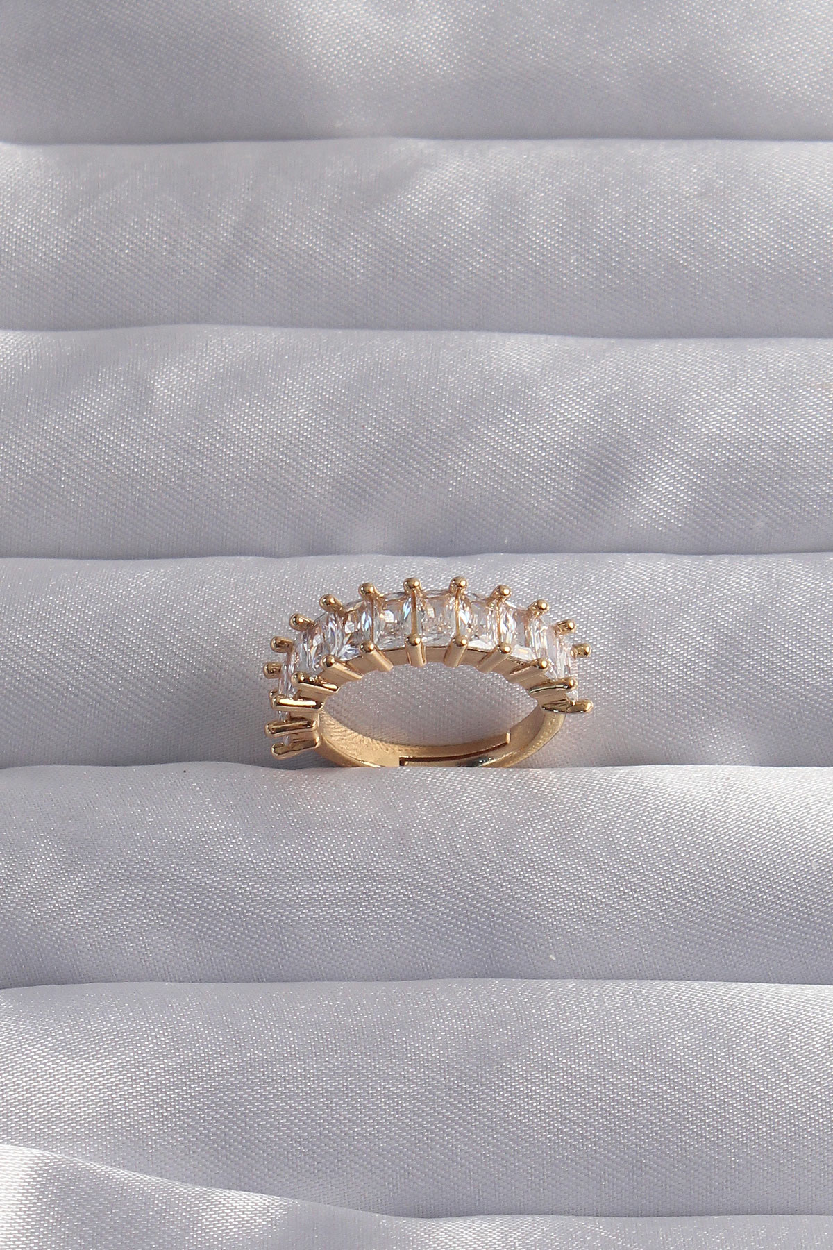 Pirinç Ayarlamalı Gold Renk Baget Taşlı Su Yolu Yüzük