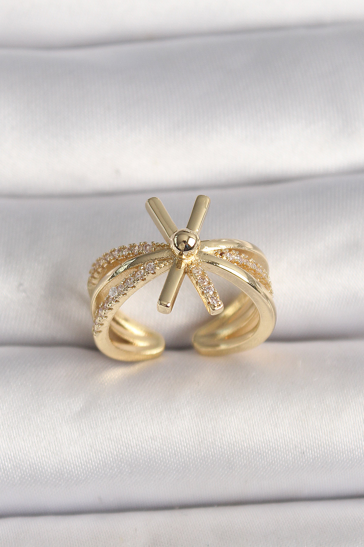 Pirinç Gold Renk Ayarlanabilir Ziron Taşlı Kadın Yüzük
