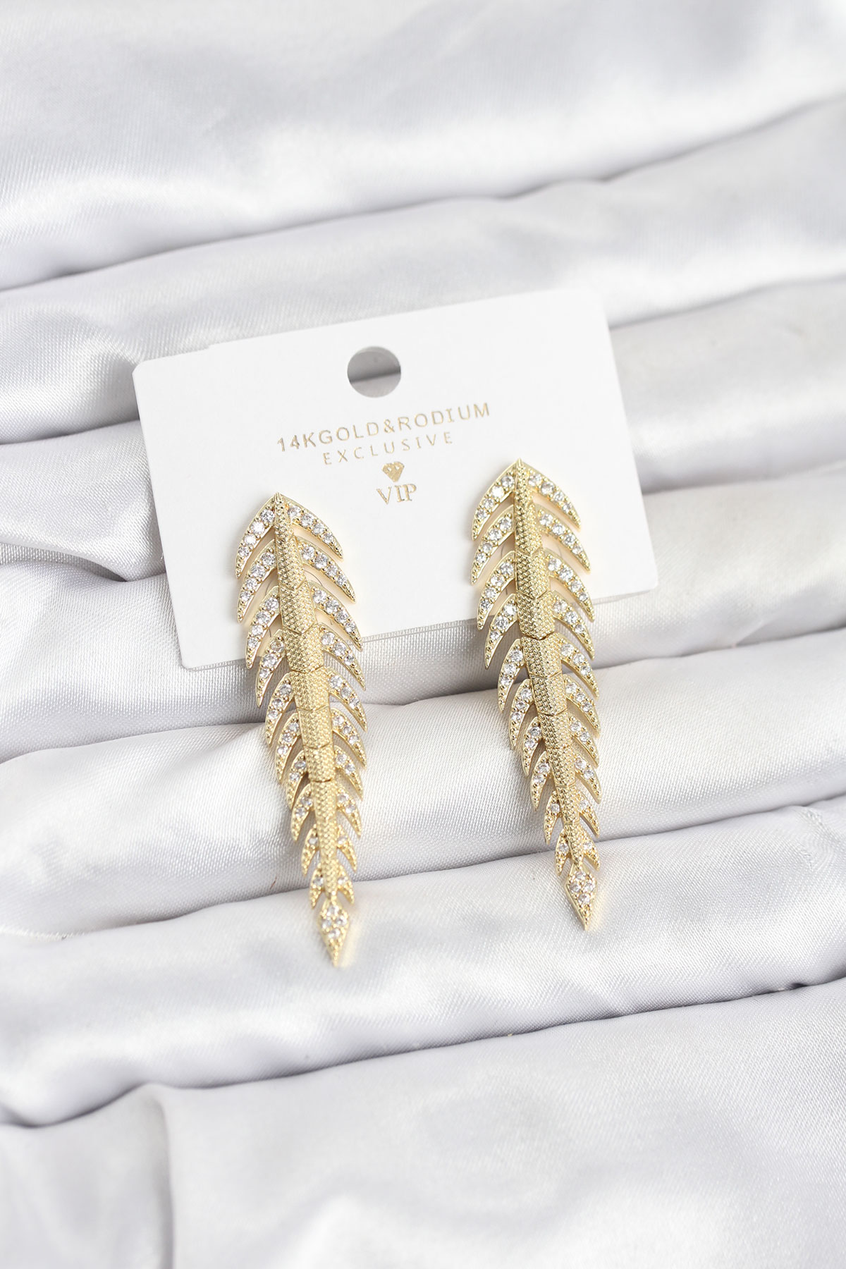 Pirinç Gold Renk Balık Sırtı Model Zirkon Taşlı Kadın Küpe