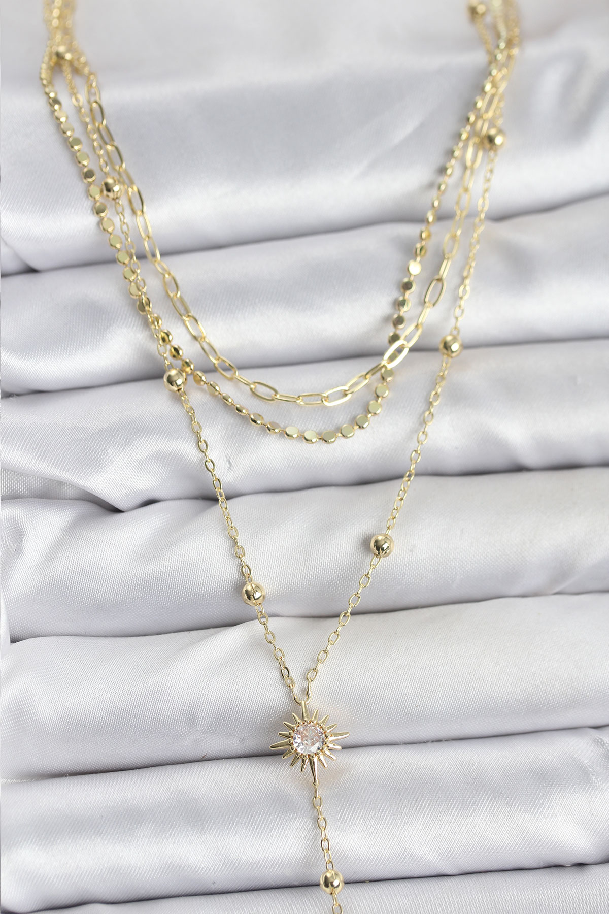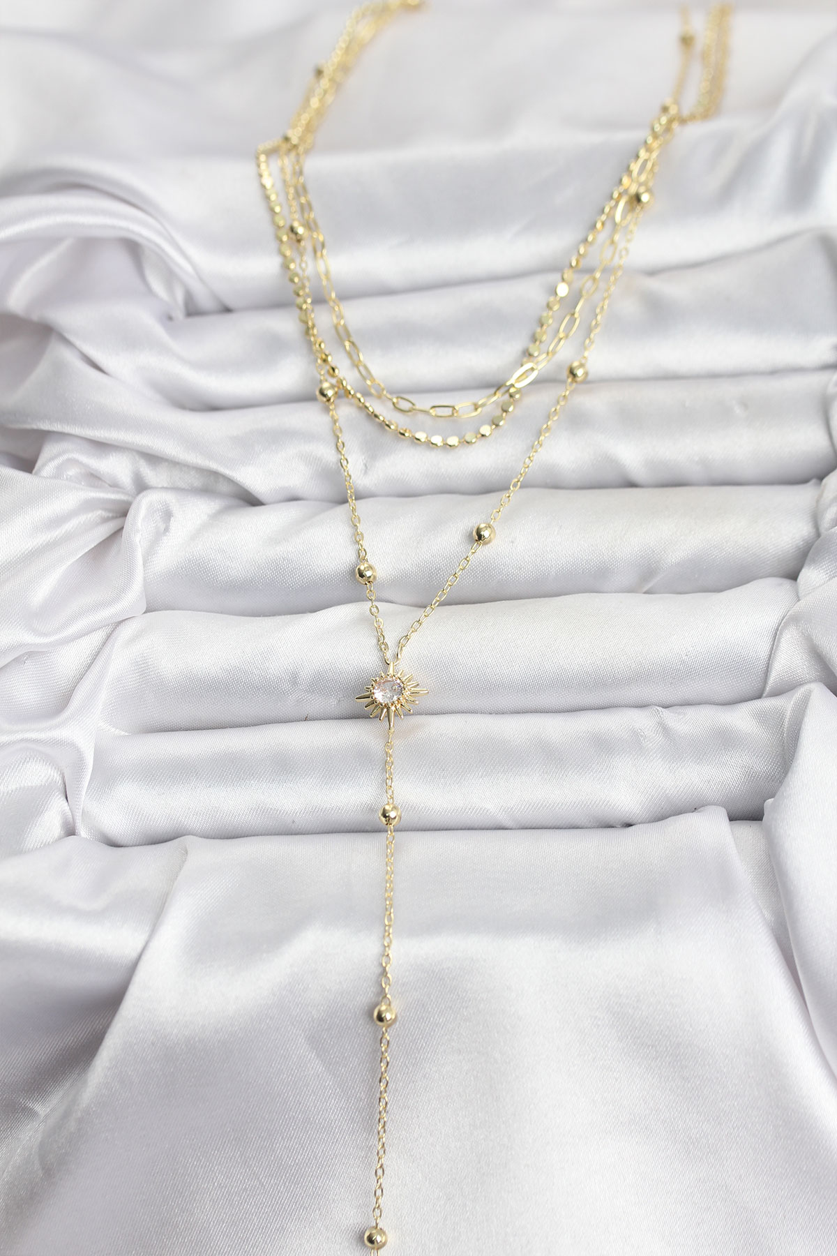 Pirinç Gold Renk Güneş Model Detaylı 3'lü Kombin Y Kadın Kolye