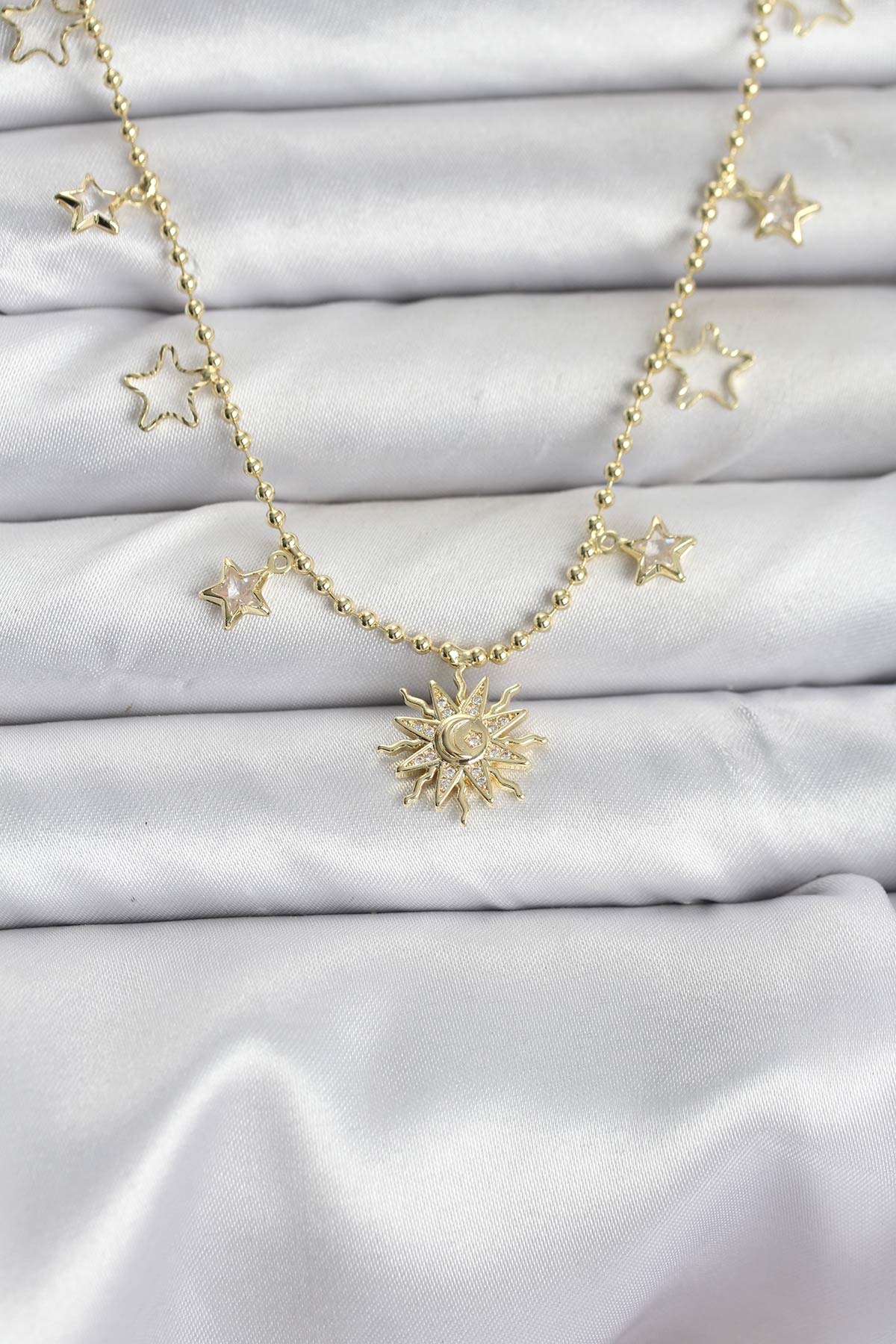 Pirinç Gold Renk Güneş Model Kadın Kolye