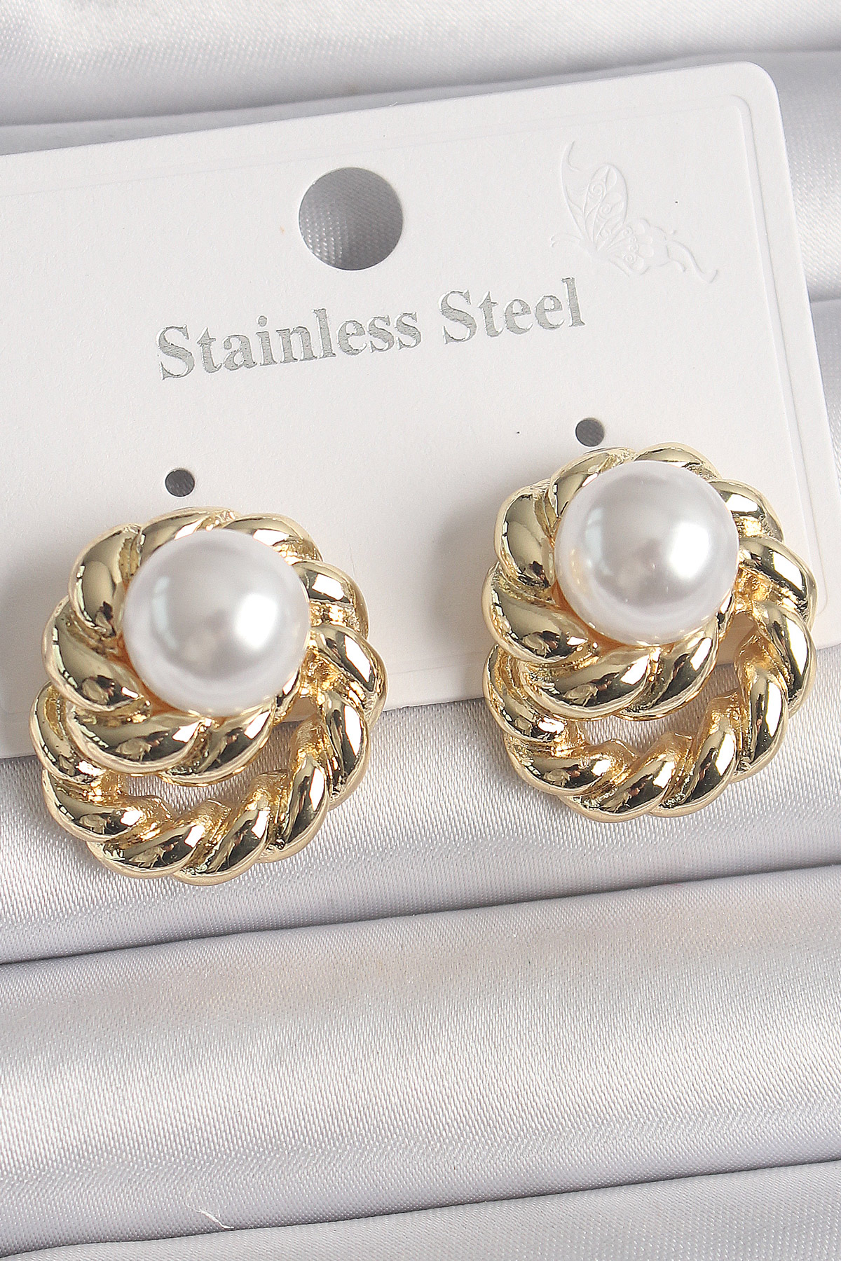 Pirinç Gold Renk İncili Sarmal Burgu Model Kadın Küpe