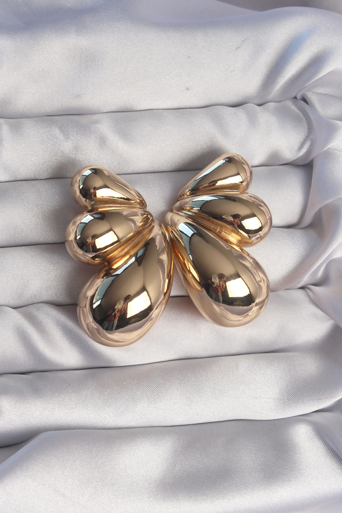 Pirinç Gold Renk İri Bombeli Kelebek Küpe