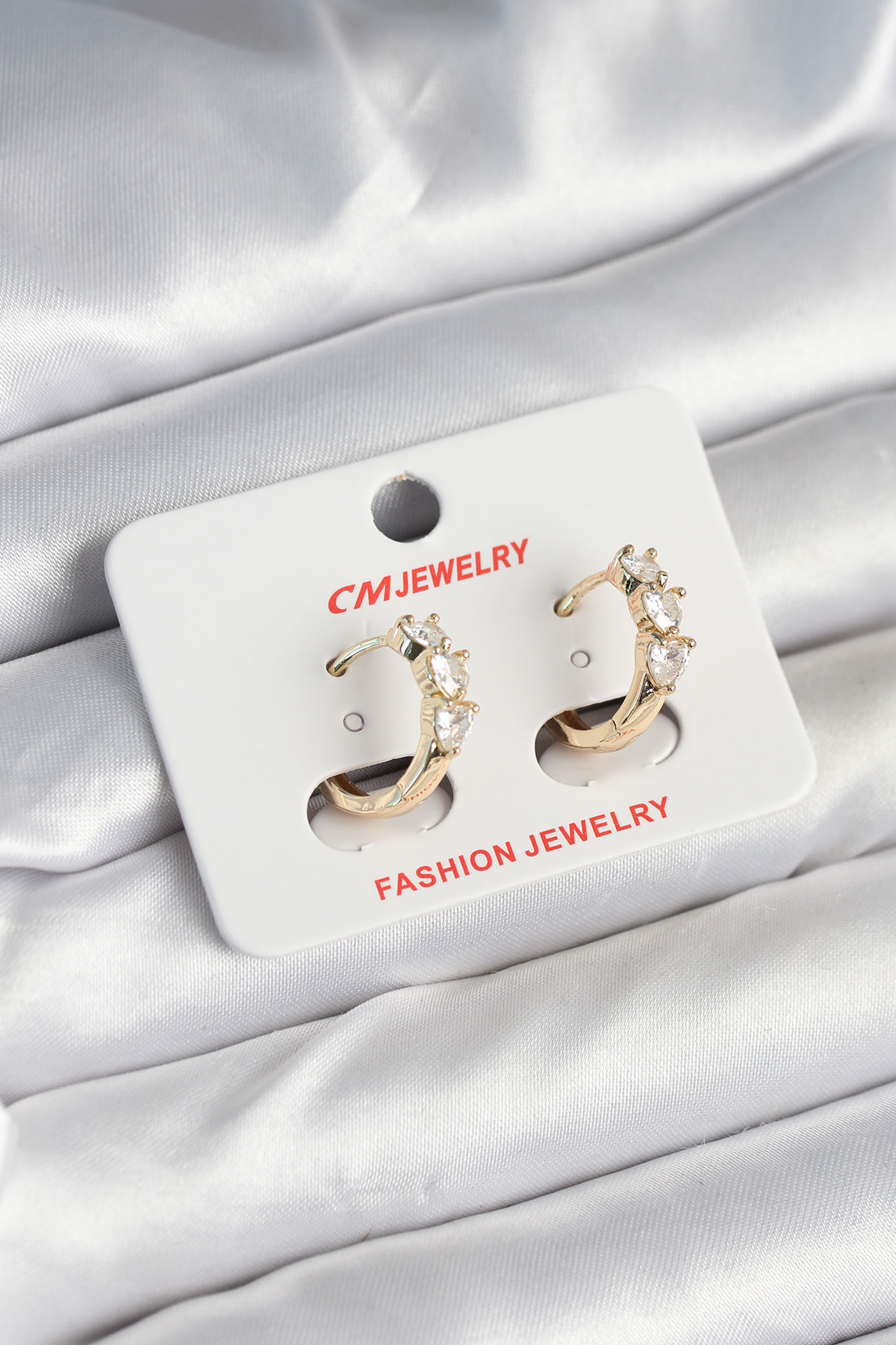 Pirinç Gold Renk Kalpli Zirkon Taşlı Kadın Küpe