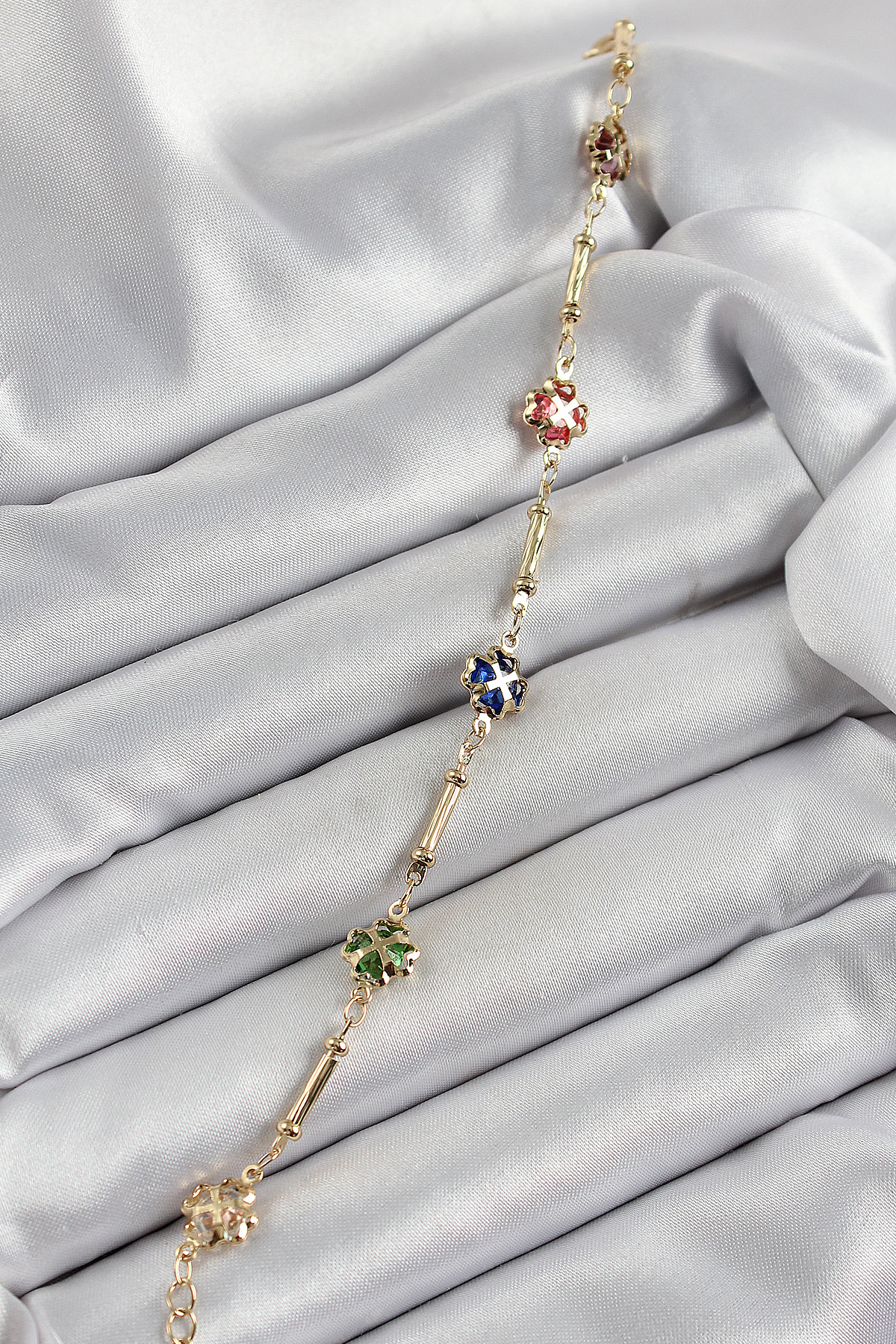 Pirinç Gold Renk Karışık Renk Yonca Zirkon Taşlı Kadın Bileklik