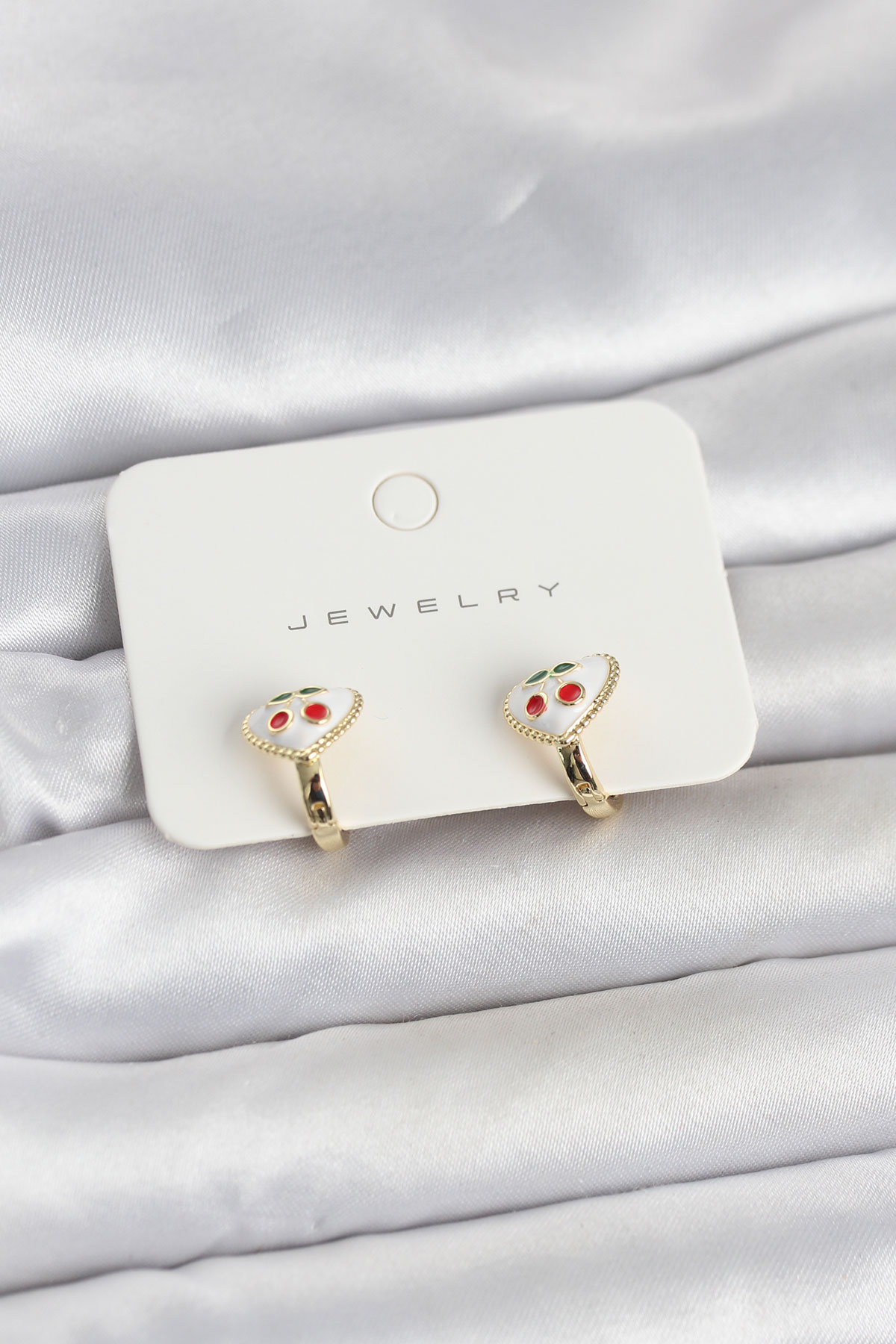 Pirinç Gold Renk Mineli Kalp Kiraz Model Çocuk Küpe