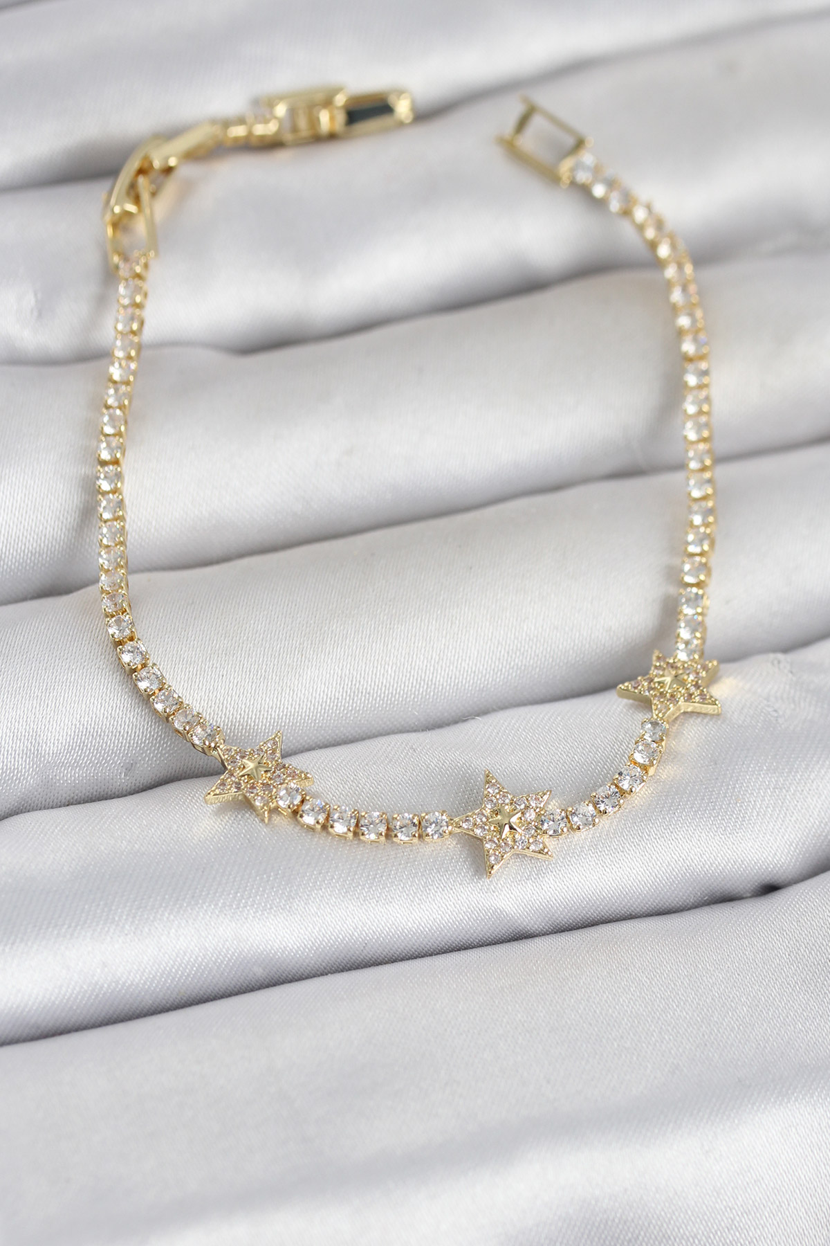 Pirinç Gold Renk Minimal Yıldız Model Zirkon Taşlı Su Yolu Kadın Bileklik