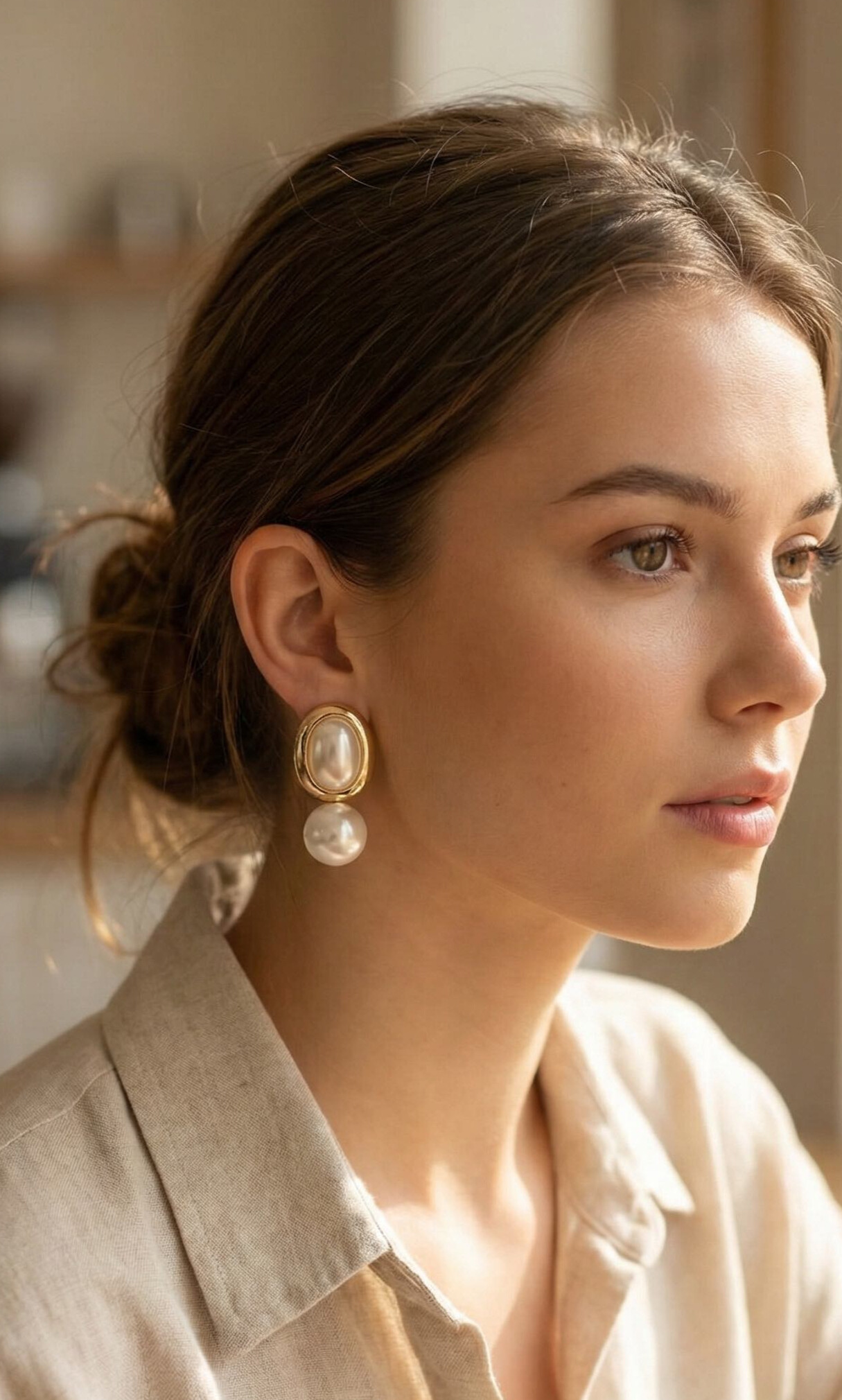 Pirinç Gold Renk Model İncili Kadın Küpe