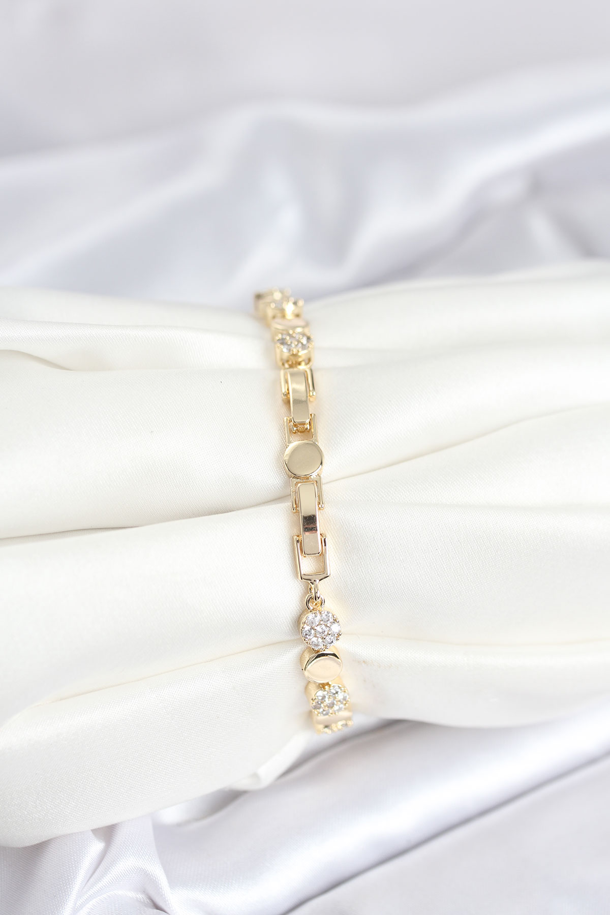 Pirinç Gold Renk Nokta Model Zirkon Taşlı Kadın Bileklik