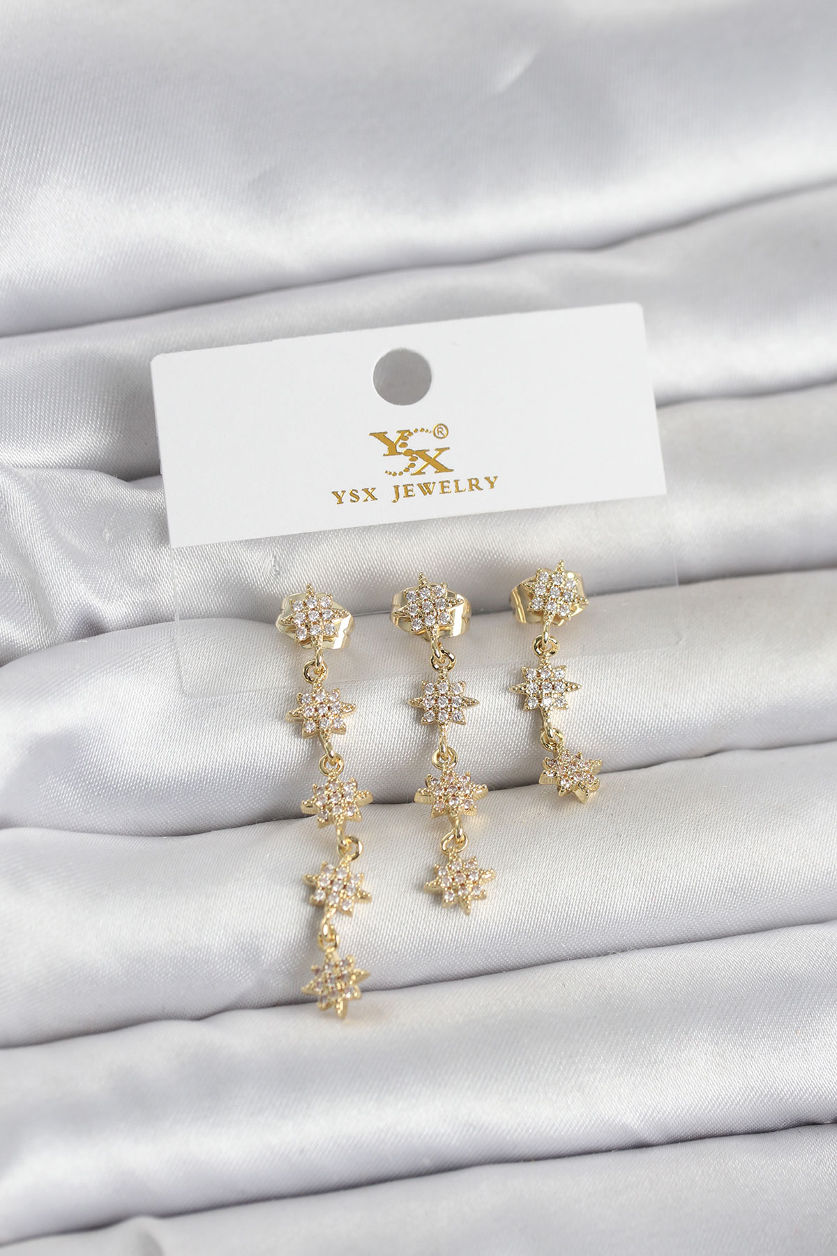 Pirinç Gold Renk Sıralı Kutup Yıldızı Model 3'lü Kadın Küpe