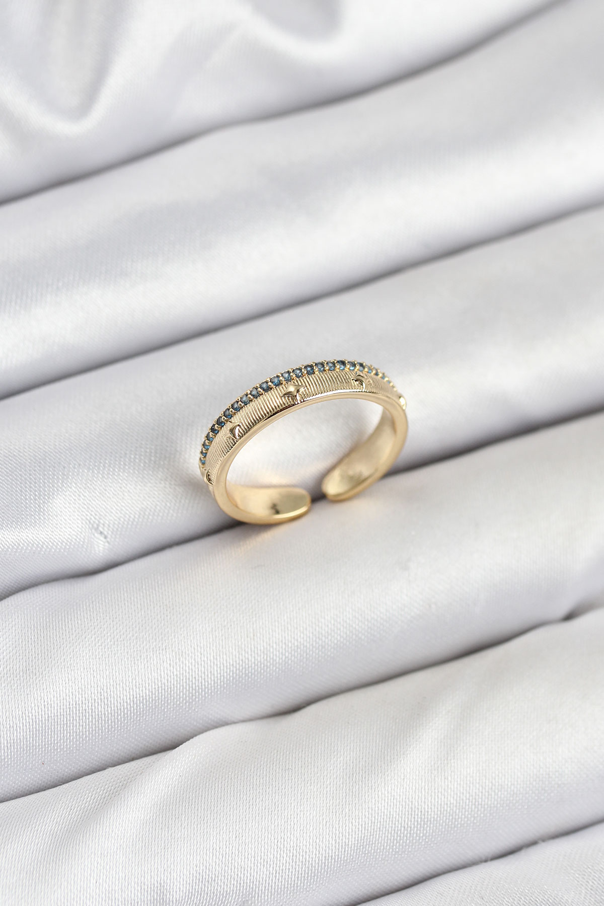 Pirinç Gold Renk Sıralı Zirkon Taşlı Kutup Yıldızı Model Kadın Yüzük