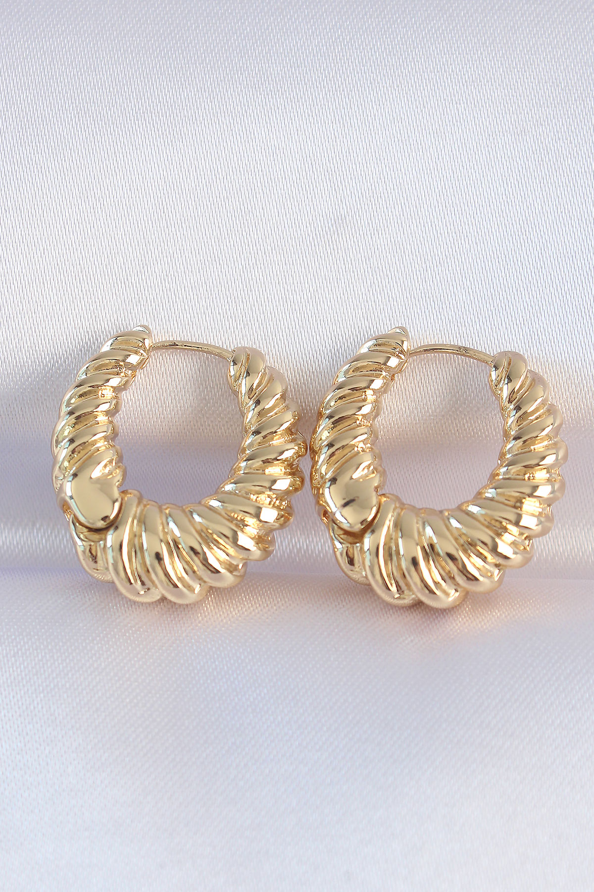 Pirinç Gold Renk Tırtık Detay Bombeli Halka Küpe