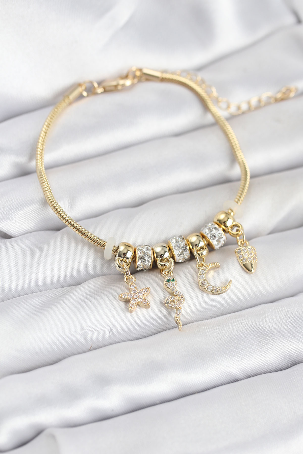 Pirinç Gold Renk Yılan Charmlı Kadın Bileklik