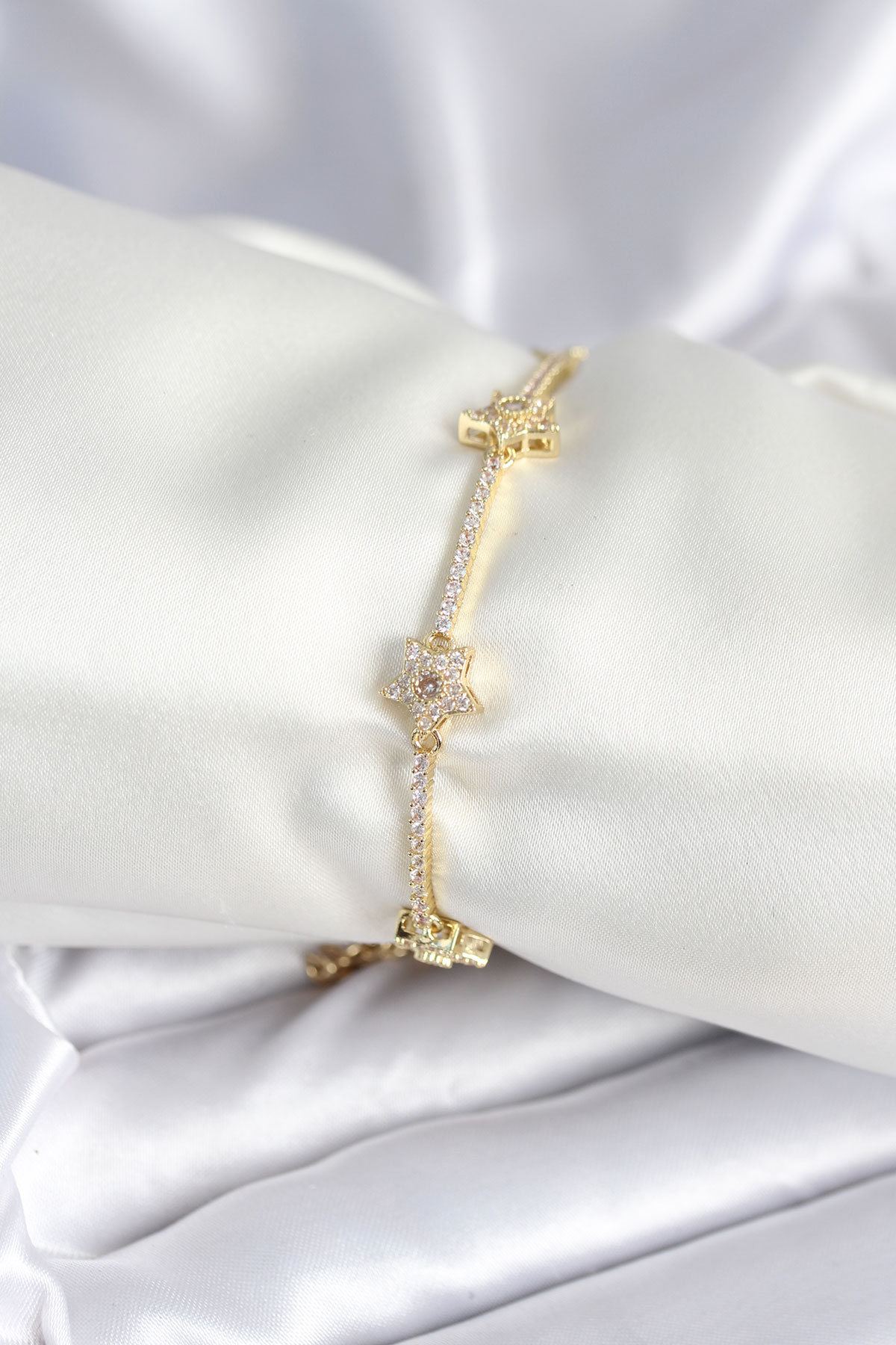 Pirinç Gold Renk Yıldız Model Kadın Bileklik