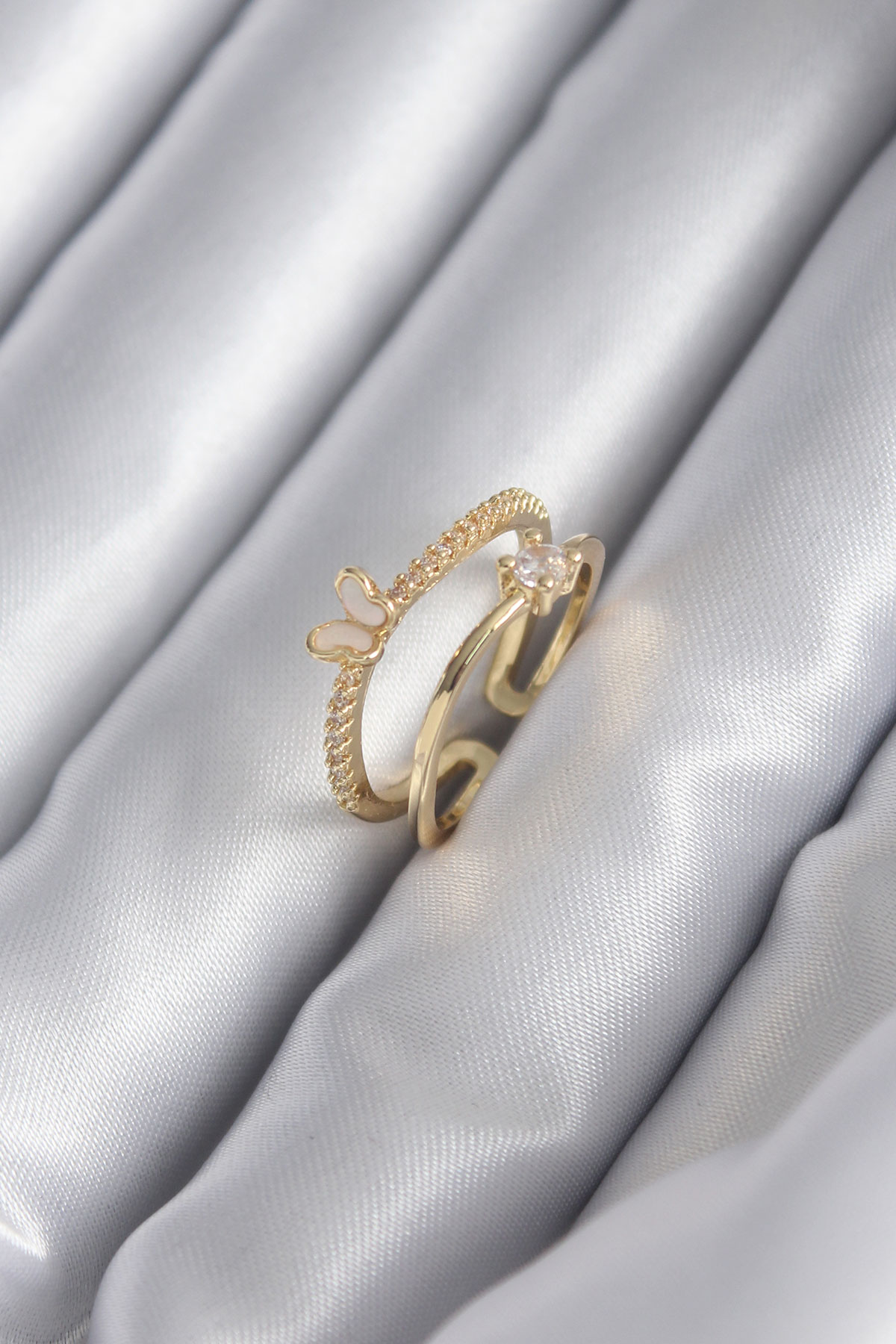 Pirinç Gold Renk Zirkon Taş Detay Kelebek Model Kadın Yüzük