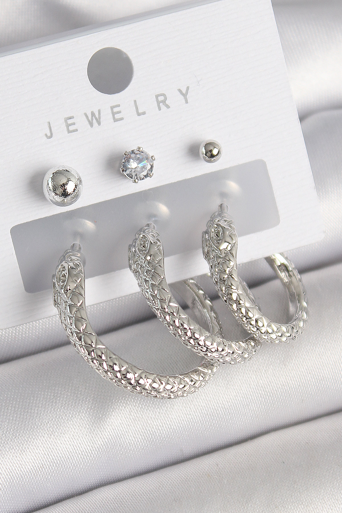 Pirinç Gold Renk Zirkon Taş Detaylı Halka Yılan Model Kadın Küpe Seti