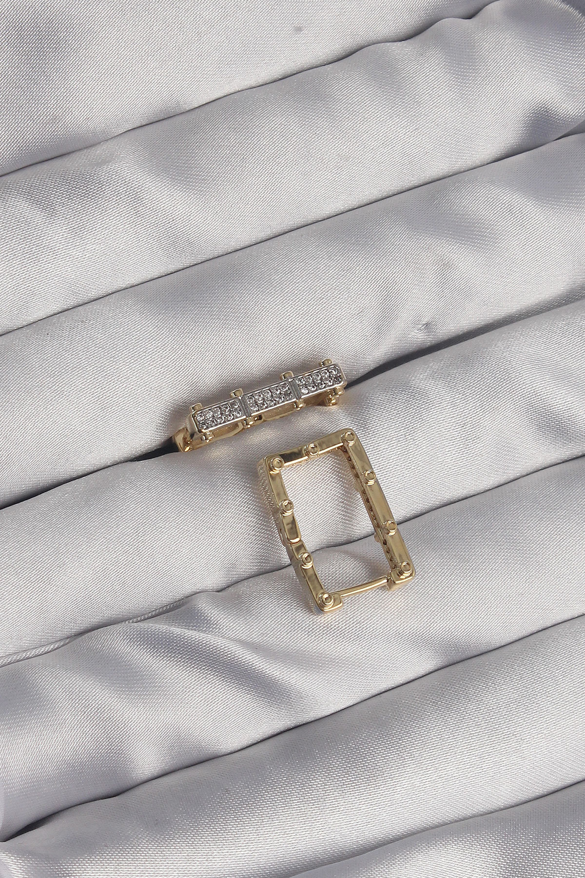 Pirinç Gold Renk Zirkon Taşlı Dikdörtgen Model Seranay Küpe