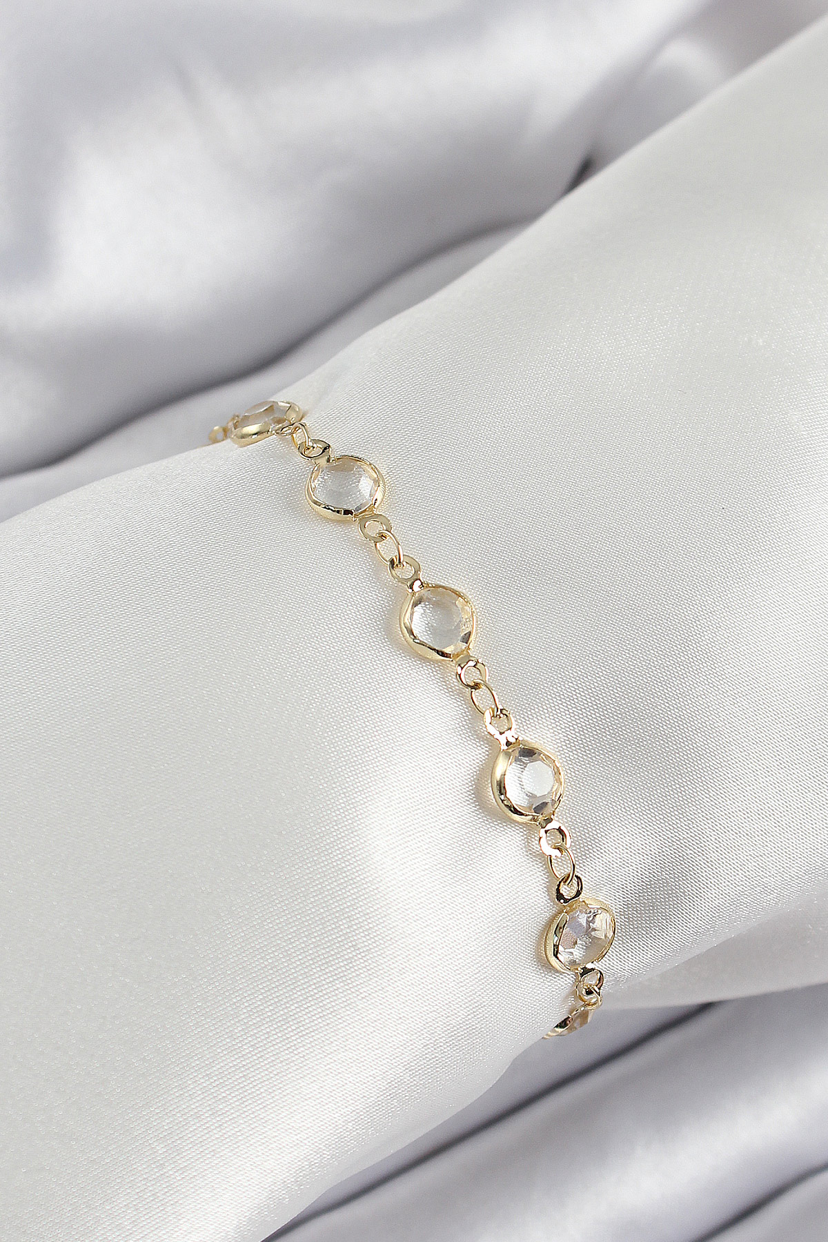 Pirinç Gold Renk Zirkon Taşlı Kadın Bileklik