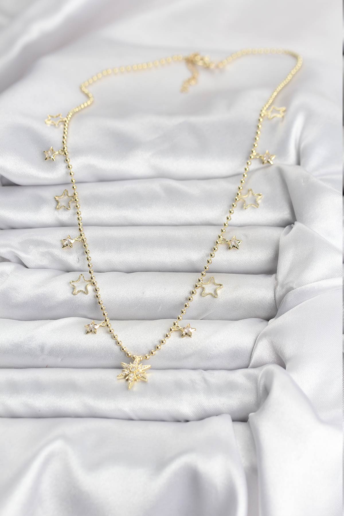 Pirinç Gold Renk Zirkon Taşlı Kutup Yıldızı Model Kadın Kolye