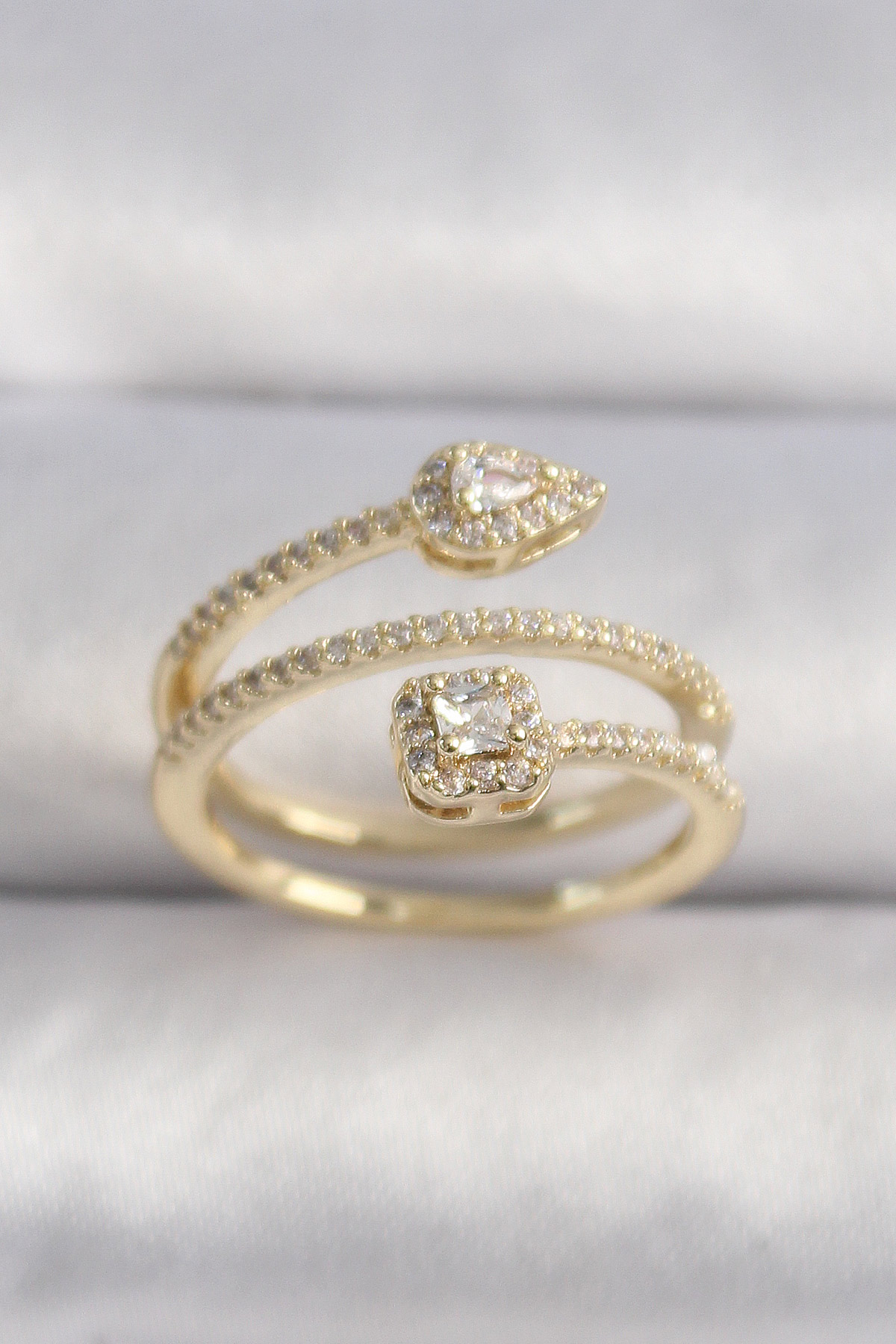Pirinç Gold Renk Zirkon Taşlı Ok Model VIP Seri Kadın Yüzük
