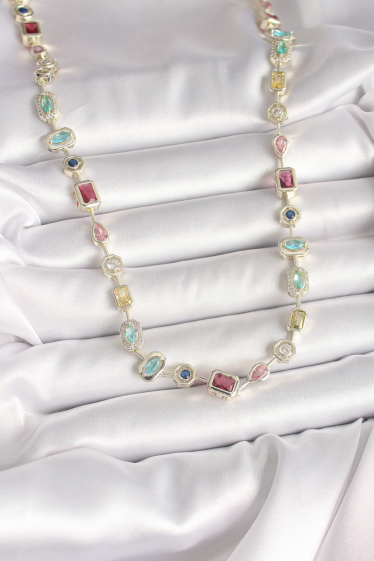 Pirinç Gold Renk Zirkon Taşlı VIP Seri Kadın Kolye