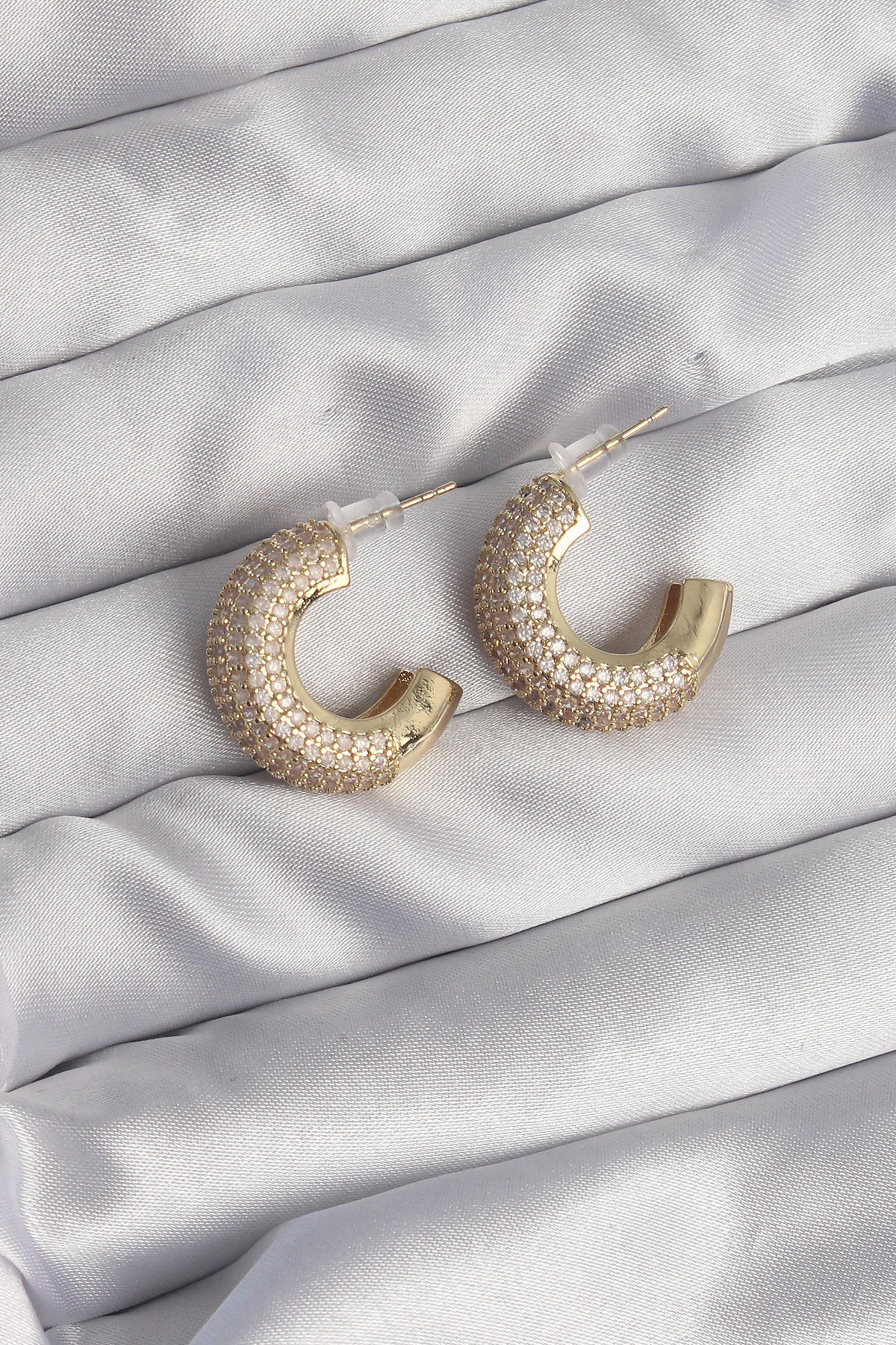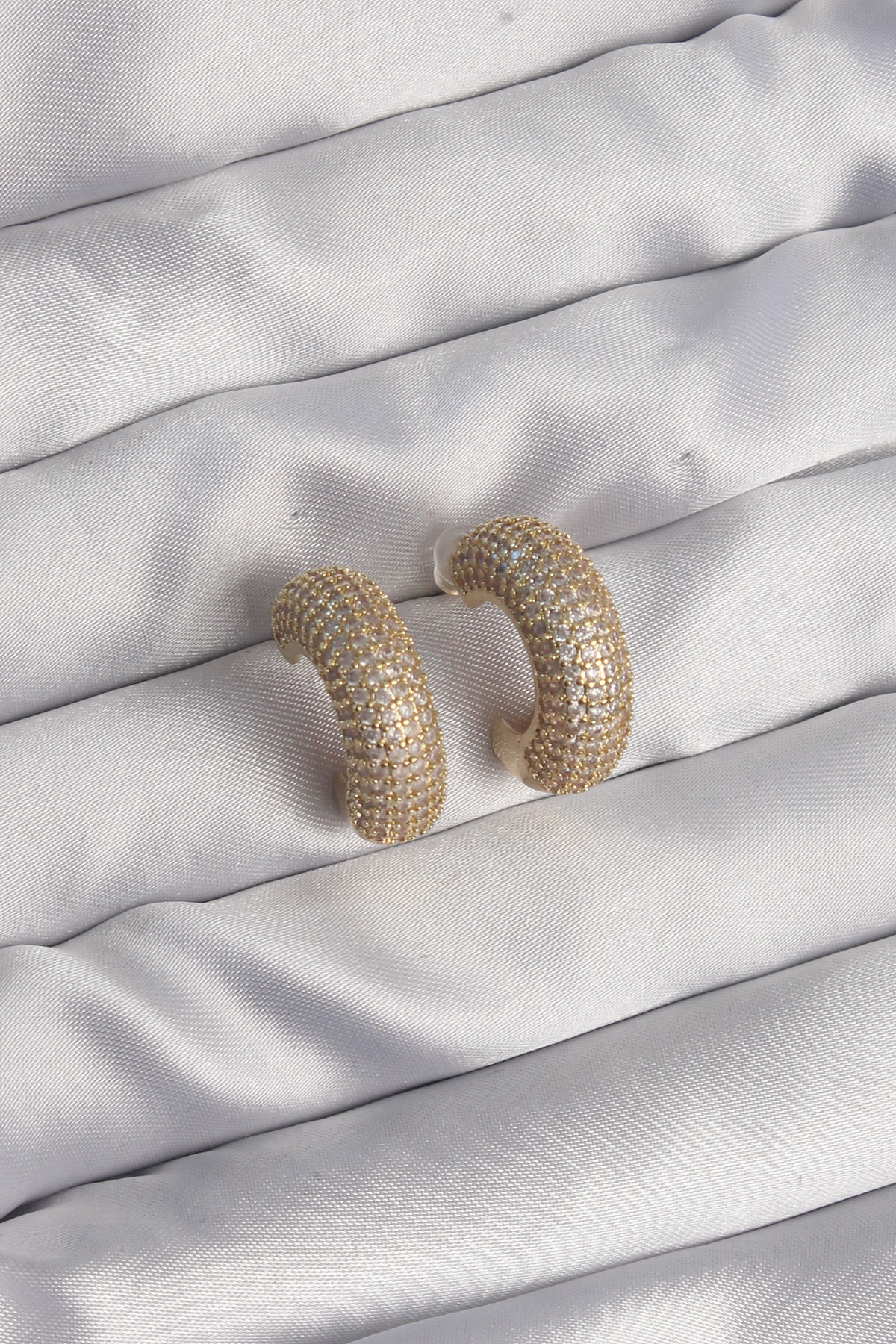 Pirinç Gold Renk Zirkon Taşlı Yarım Halka Küpe