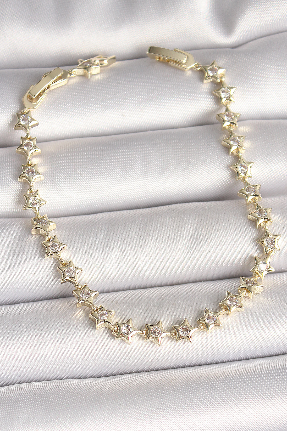 Pirinç Gold Renk Zirkon Taşlı Yıldız Model VIP Seri Kadın Bileklik