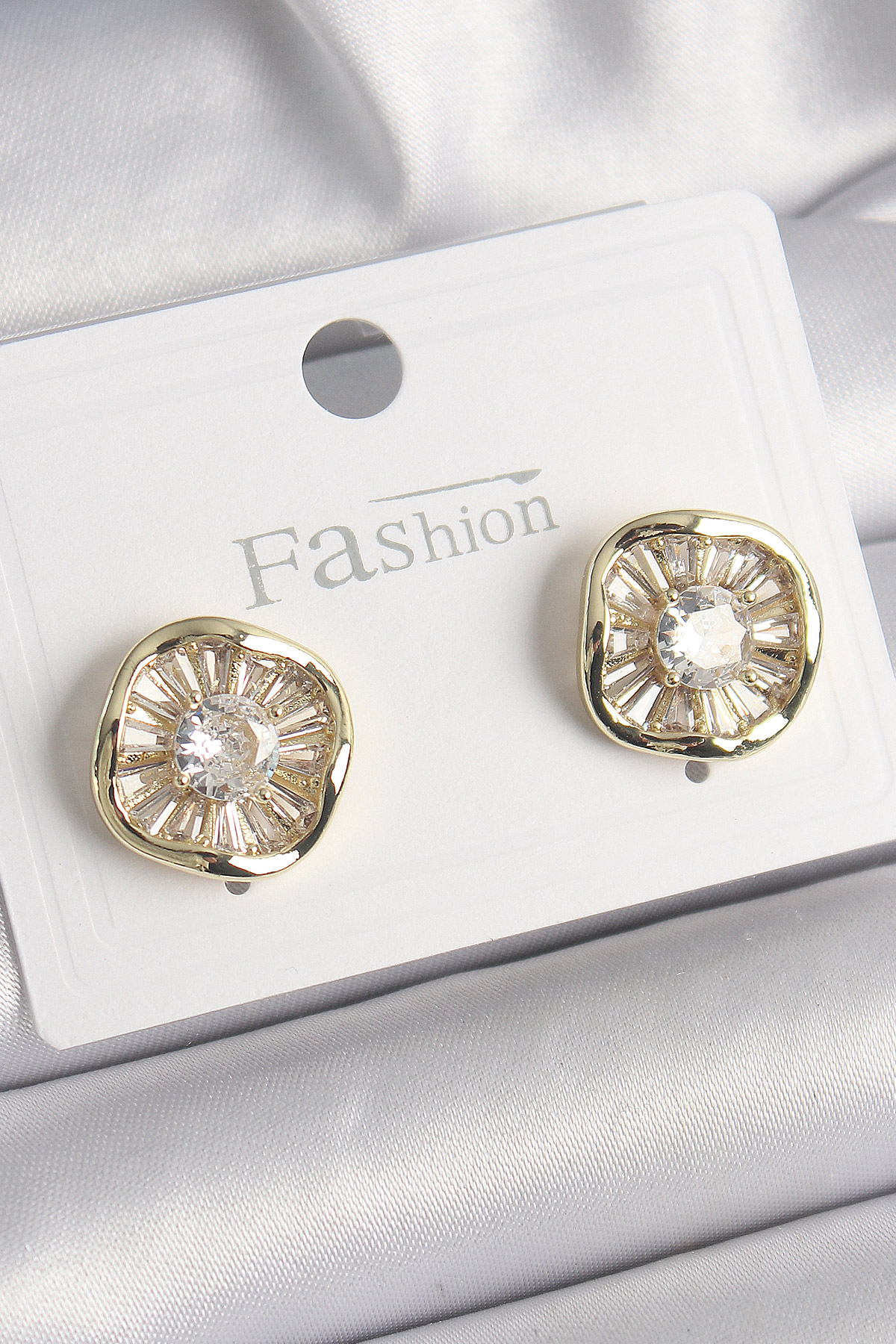 Pirinç Gold Renk Zirkon Taşlı Yonca Model Kadın Küpe