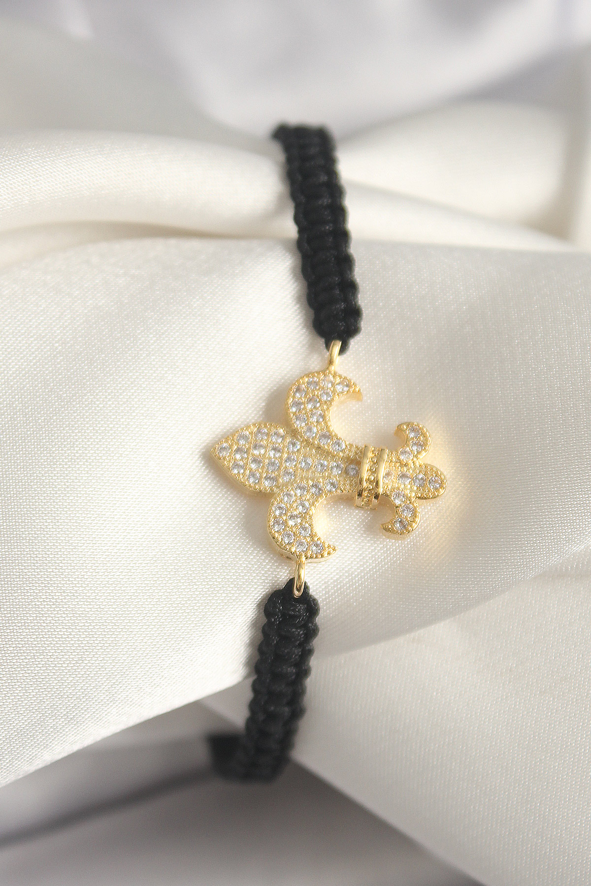 Pirinç Gold Renk Zirkon Taşlı Zambak Figür Asansörlü Makrome Model Kadın Bileklik