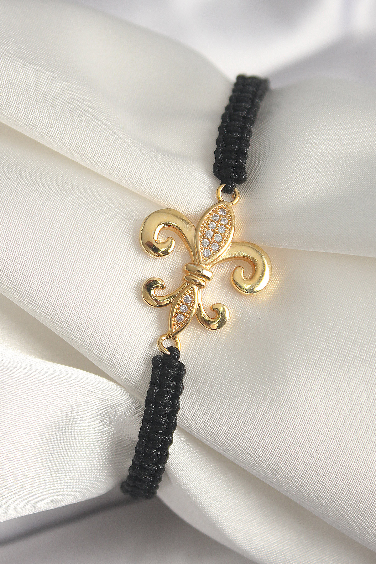 Pirinç Gold Renk Zirkon Taşlı Zambak Figür Asansörlü Makrome Model Kadın Bileklik