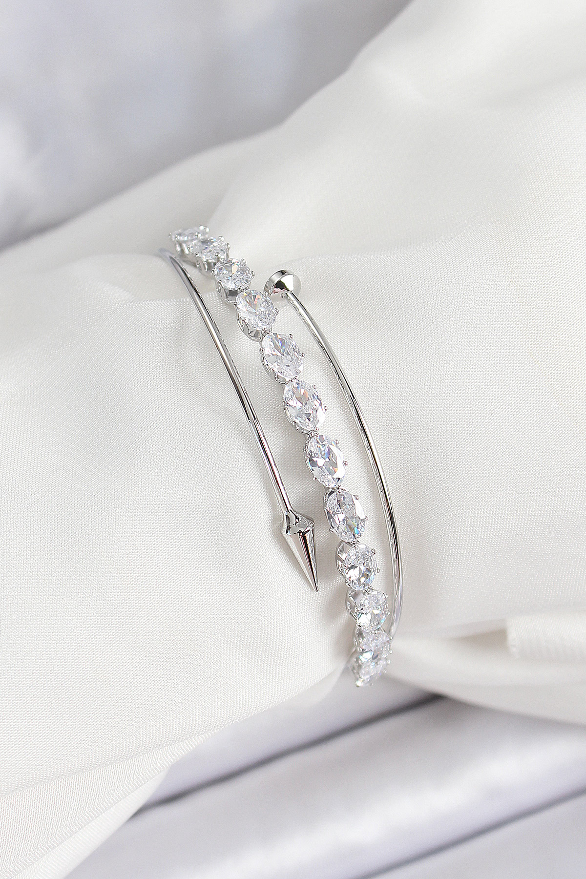 Pirinç Gümüş Renk Arpa Zirkon Taşlı Kadın Bileklik