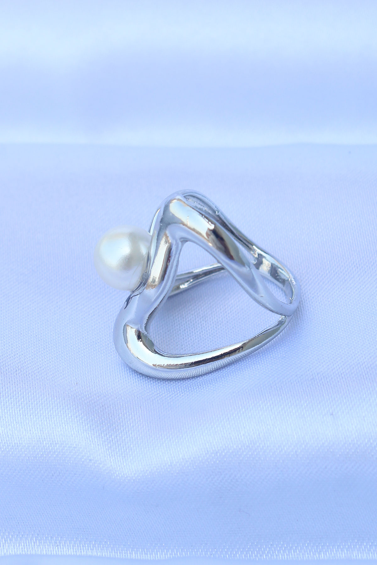 Pirinç Gümüş Renk Ayarlanabilir İnci Taşlı Yüzük