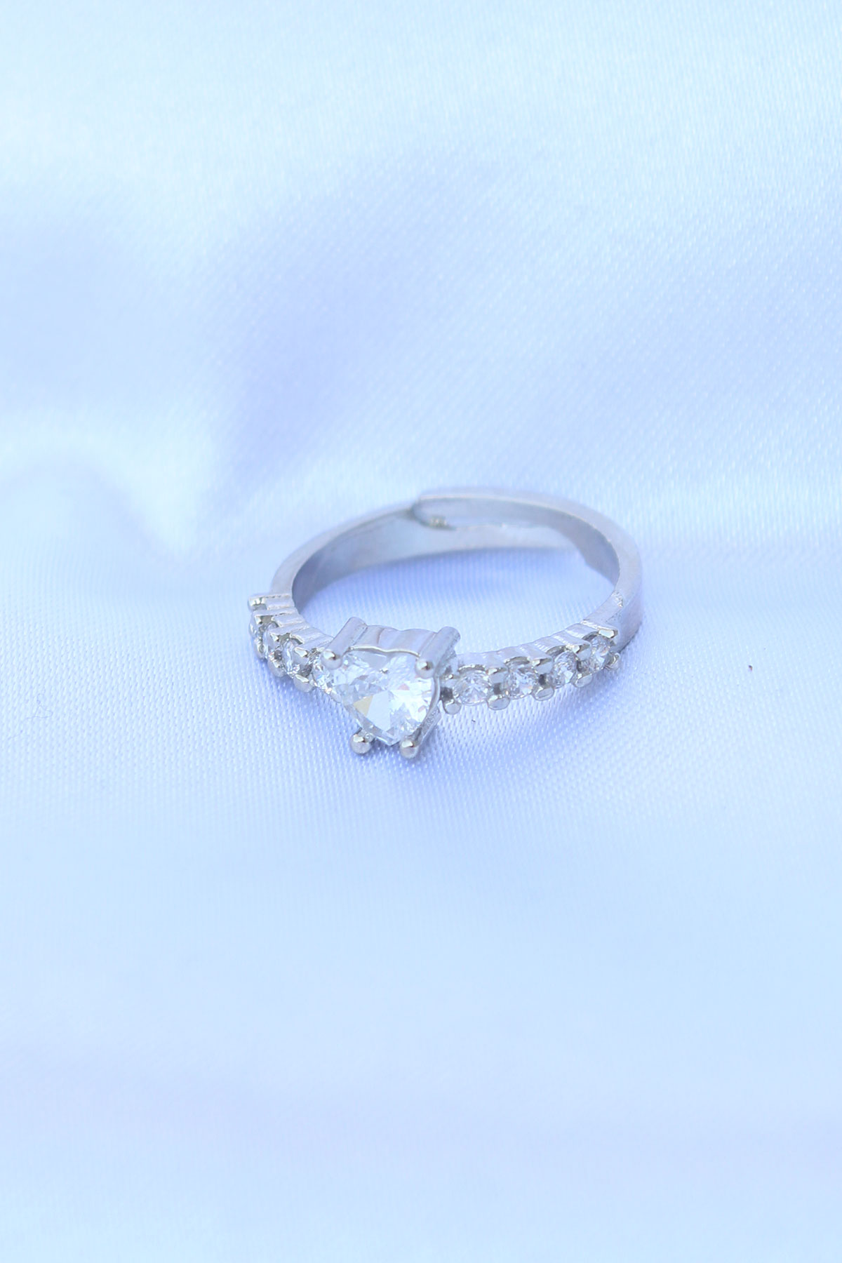Pirinç Gümüş Renk Ayarlanabilir Zirkon Taşlı Minimal Kalp Yüzük