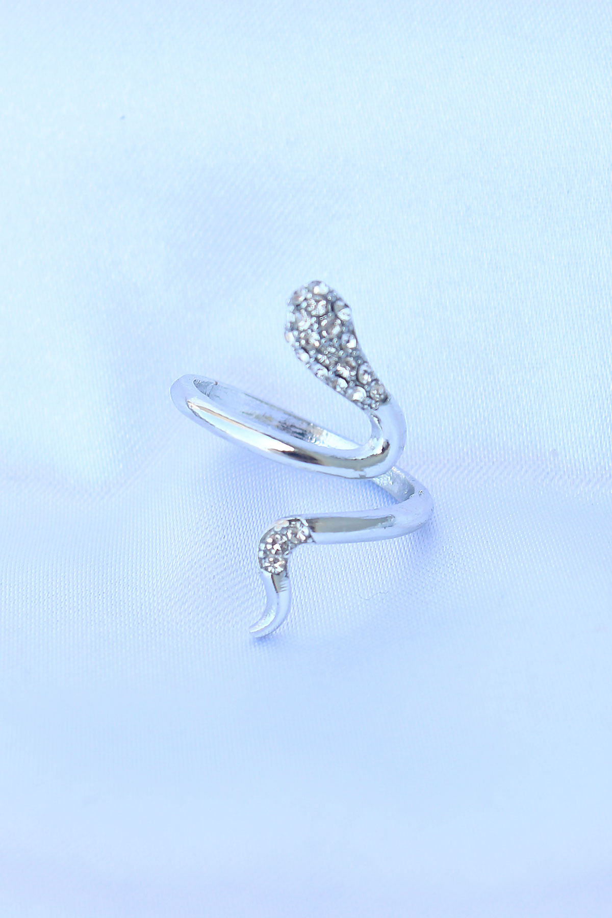 Pirinç Gümüş Renk Ayarlanabilir Zirkon Taşlı Yılan Yüzük
