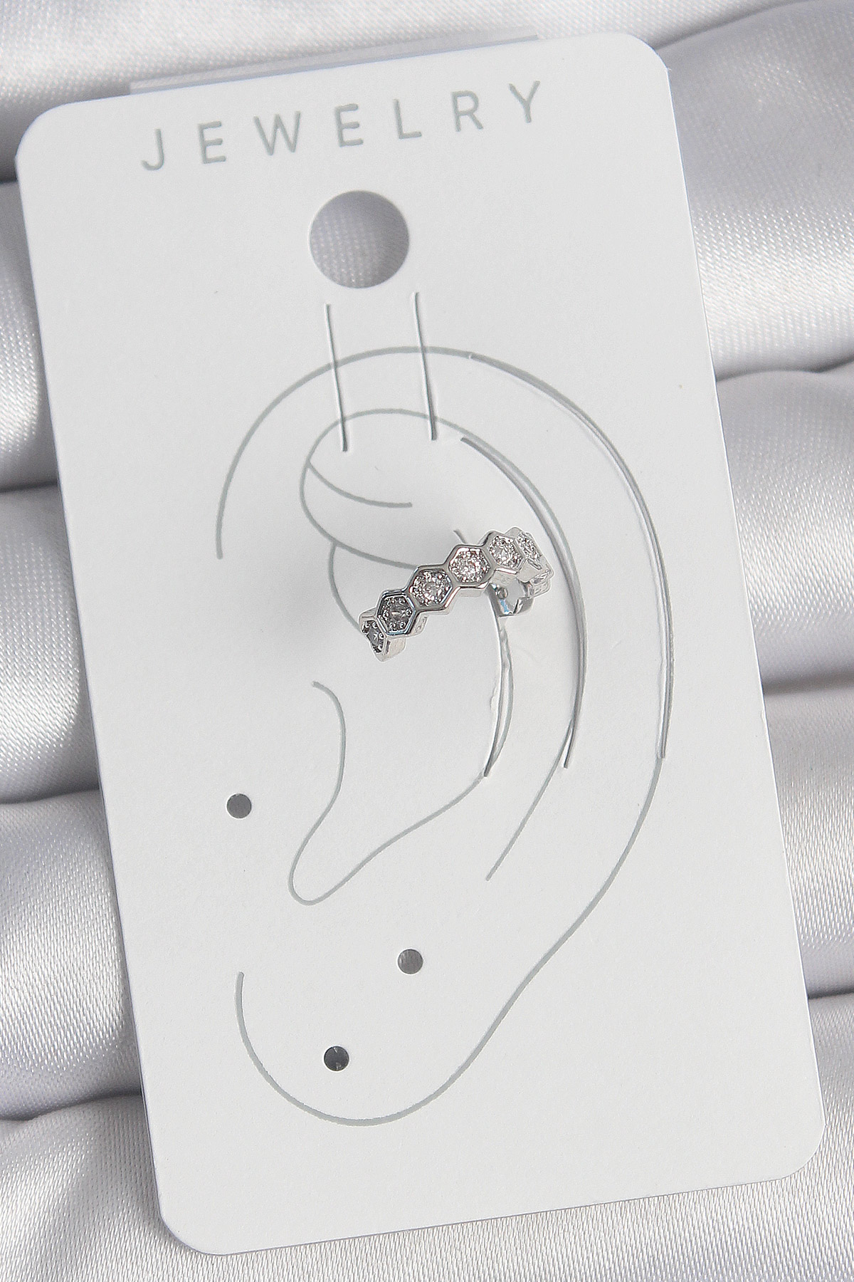 Pirinç Gümüş Renk Bal Peteği Model Zirkon Taşlı Kadın Kıkırdak Küpe