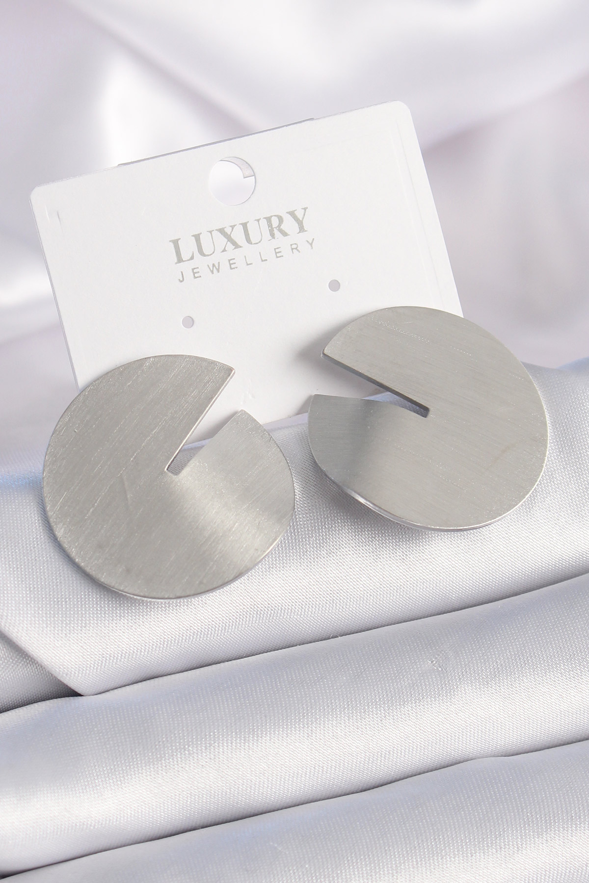 Pirinç Gümüş Renk Daire Plaka Model Kadın Küpe
