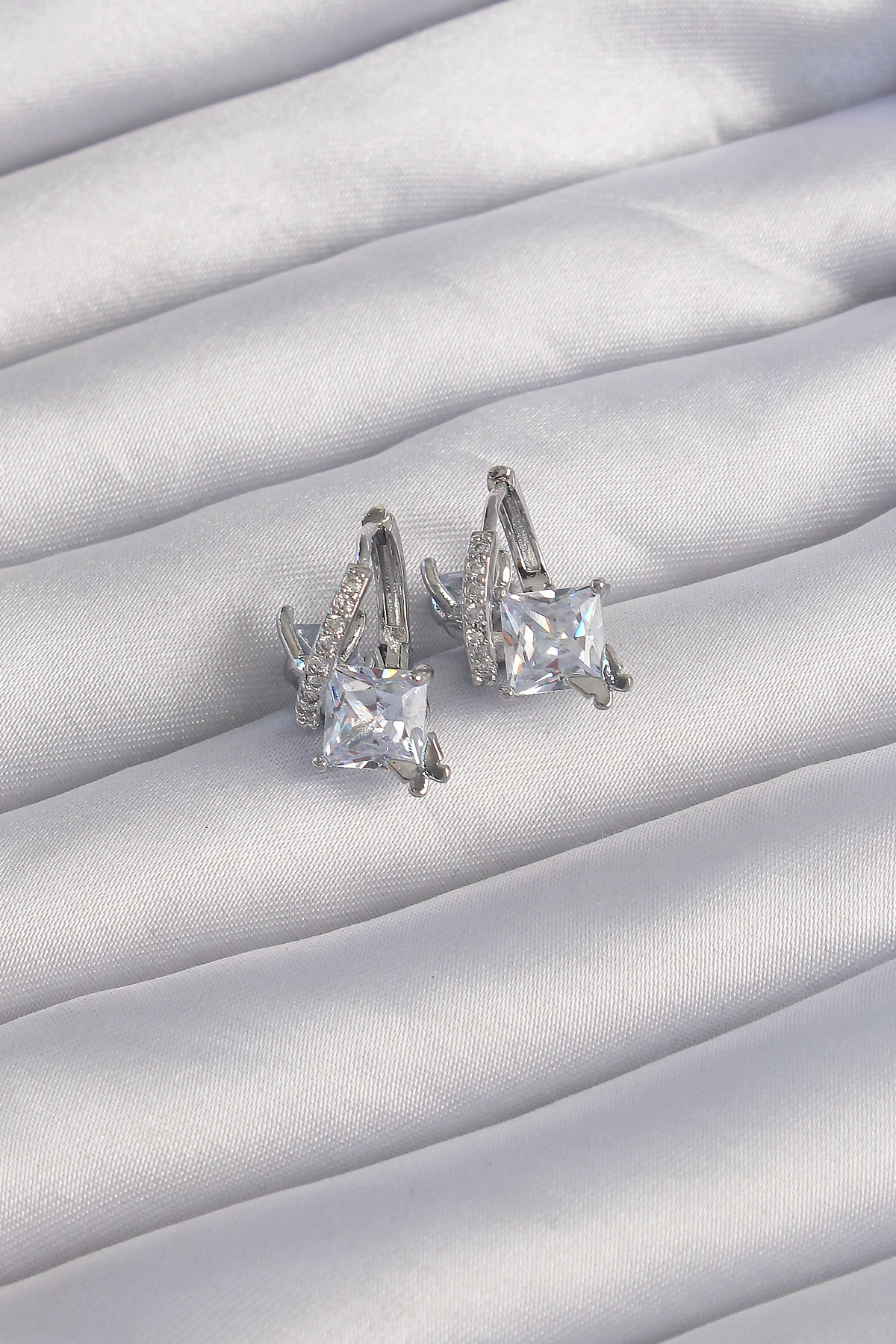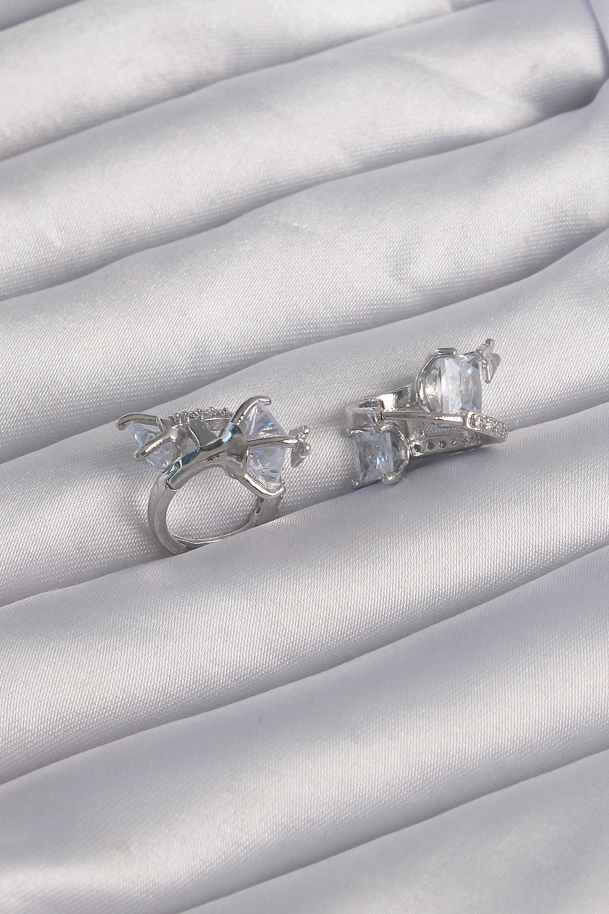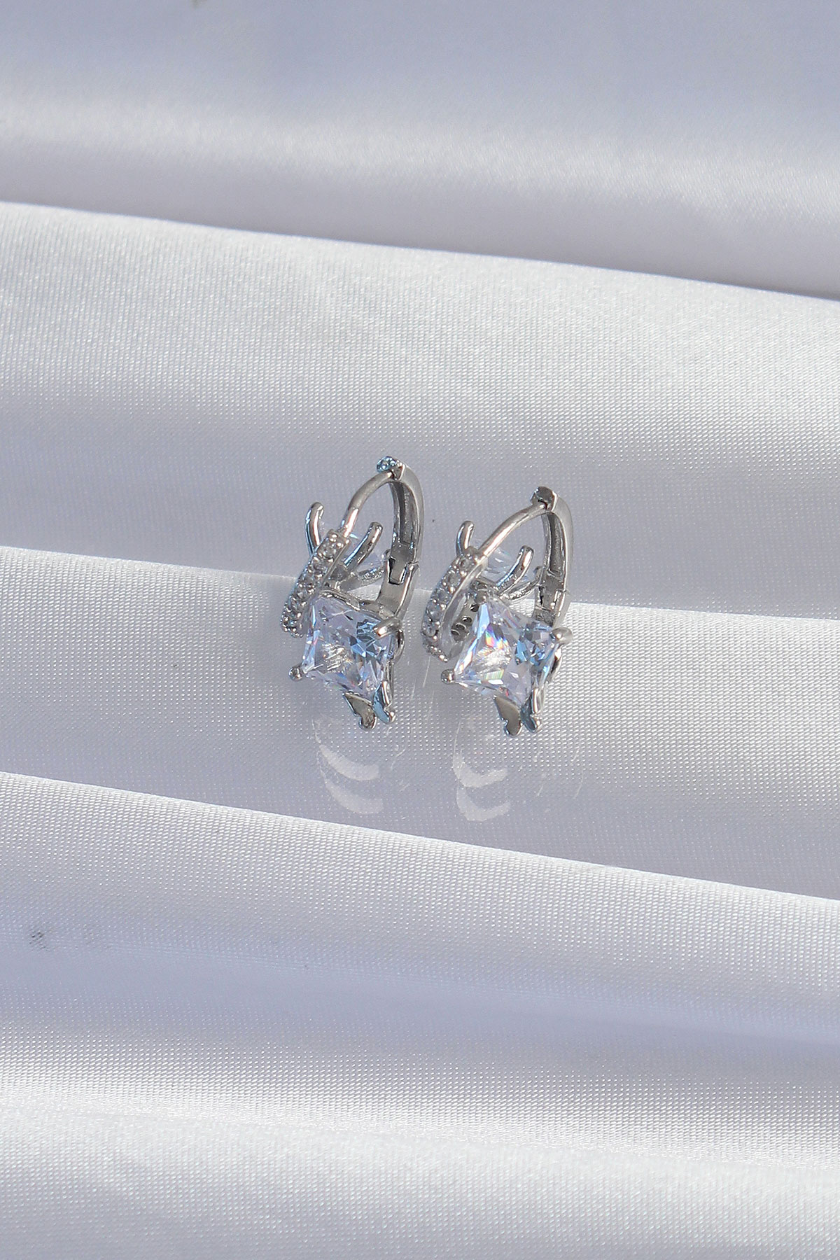 Pirinç Gümüş Renk İri Zirkon Taşlı Kıvrımlı Minimal Kelebekli Halka Küpe