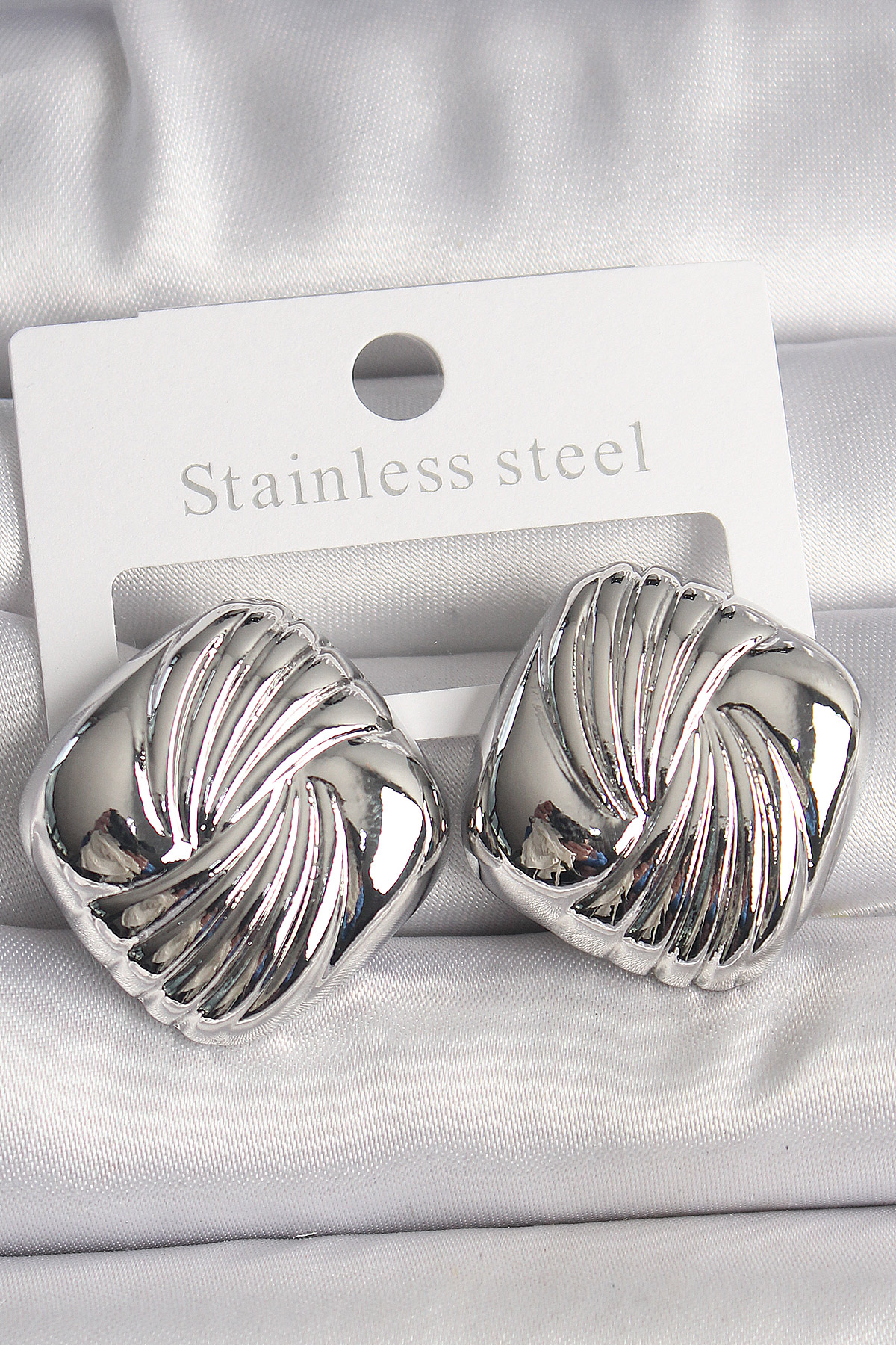 Pirinç Gümüş Renk İşlemeli Kare Model Kadın Küpe