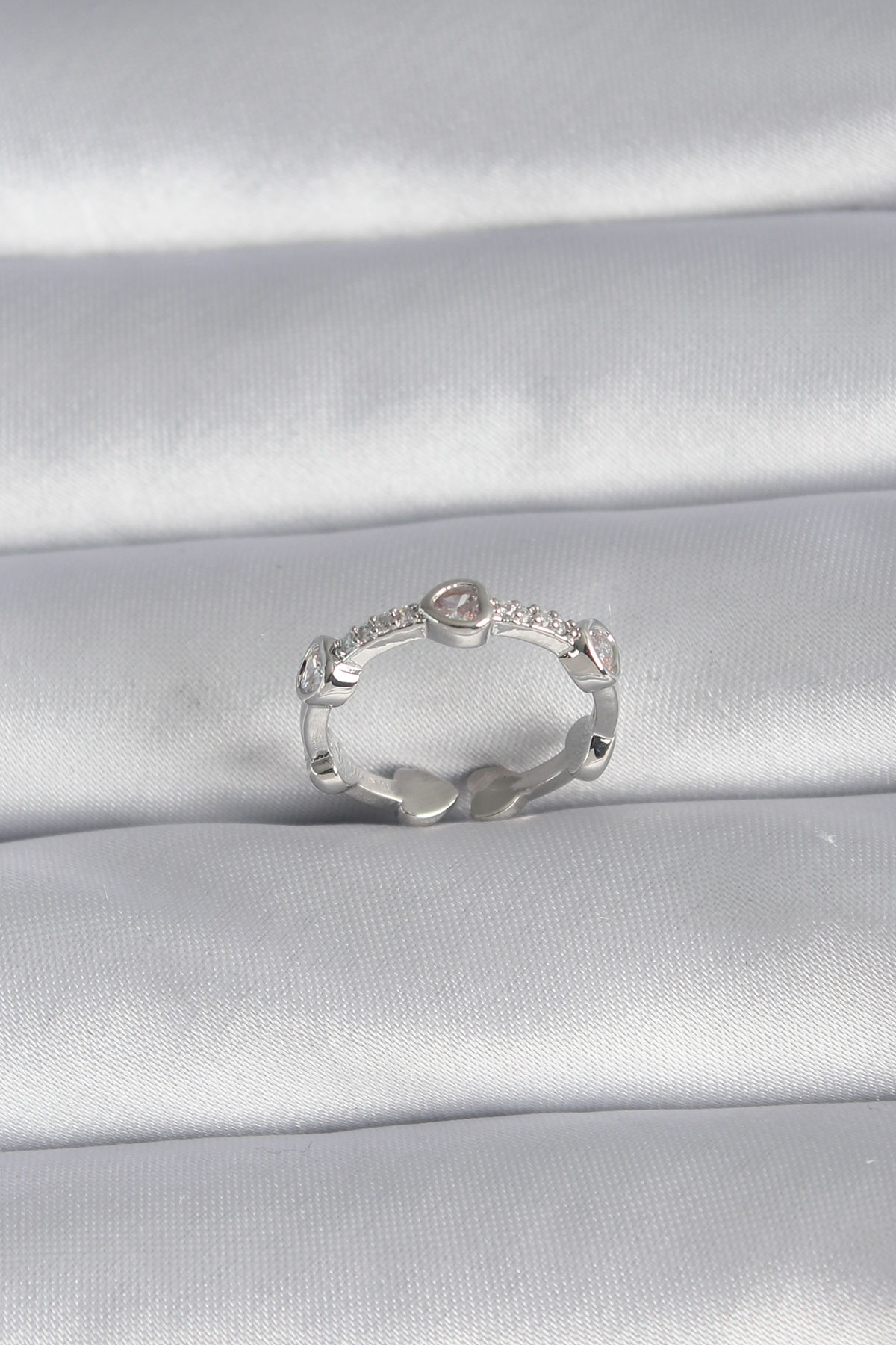 Pirinç Gümüş Renk Kalp Model Zirkon Taş Detay Kadın Yüzük