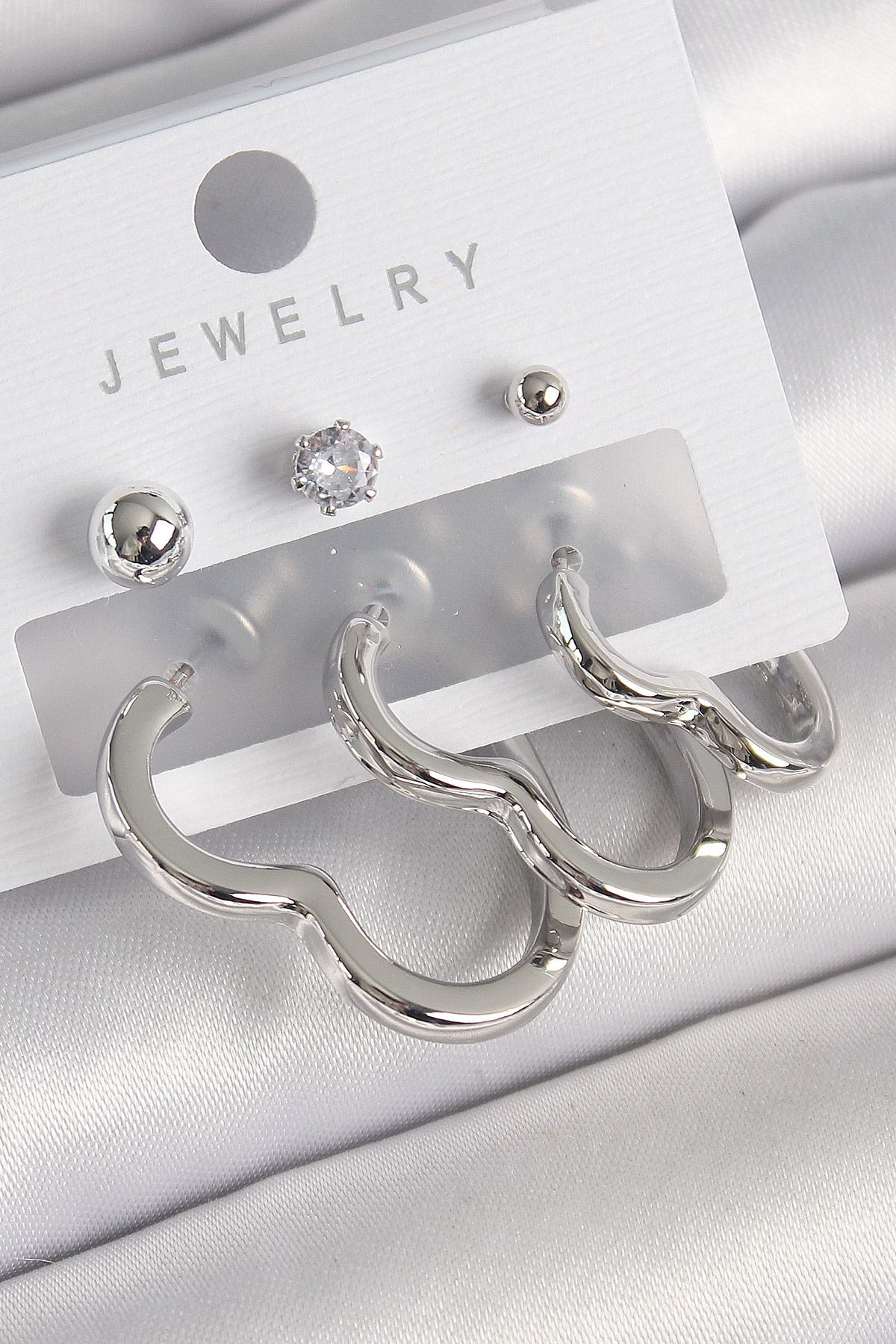 Pirinç Gümüş Renk Kalp Model Zirkon Taş Topçuk Detay Kadın Küpe Seti
