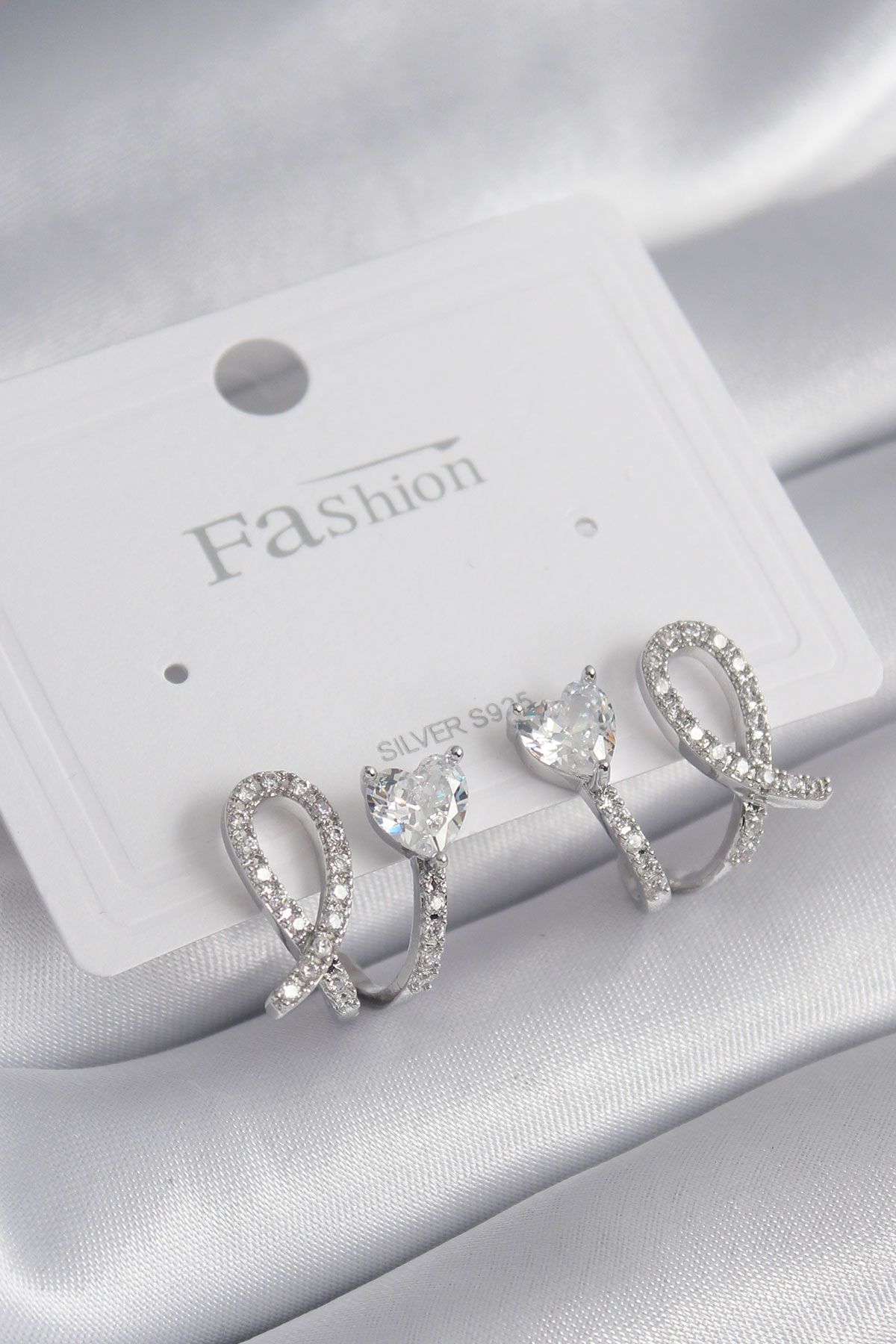 Pirinç Gümüş Renk Kalp Model Zirkon Taşlı Kadın Küpe