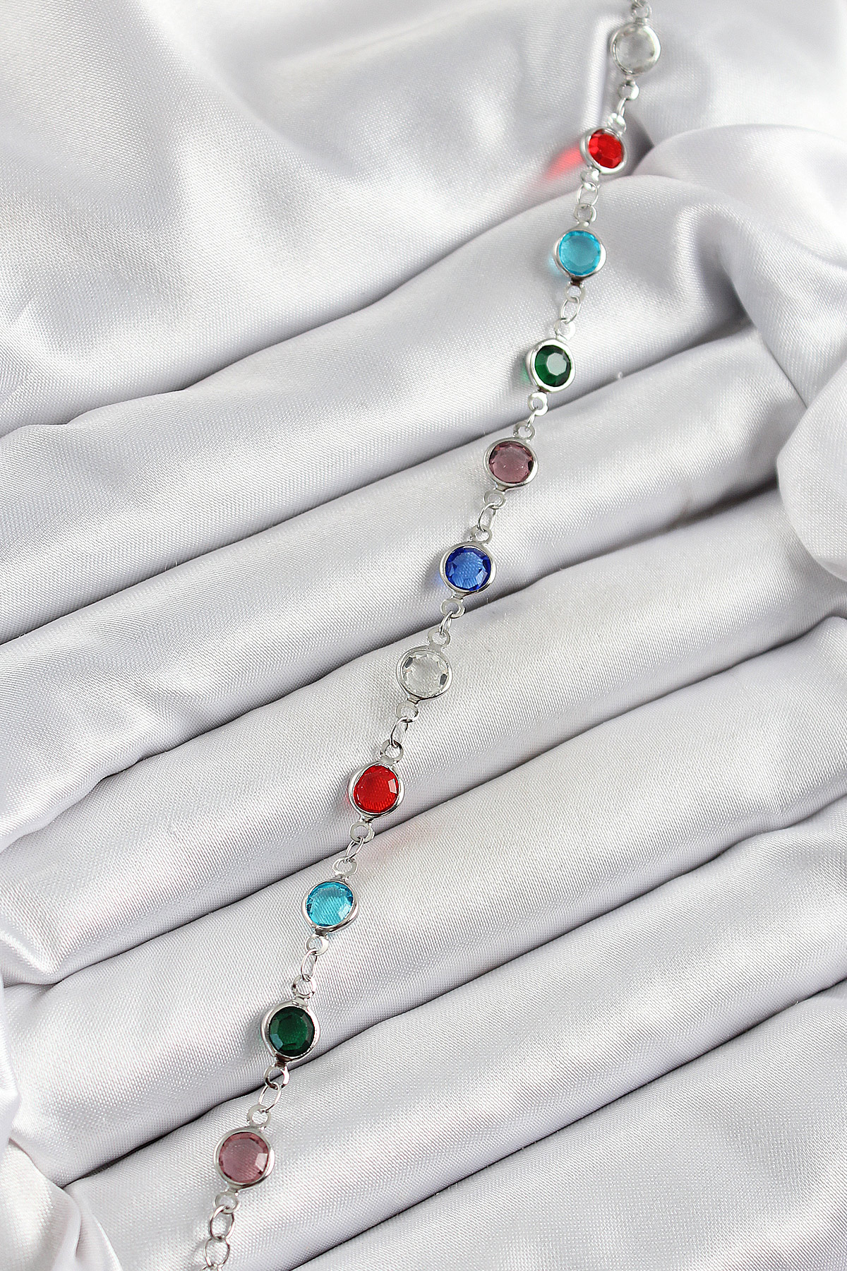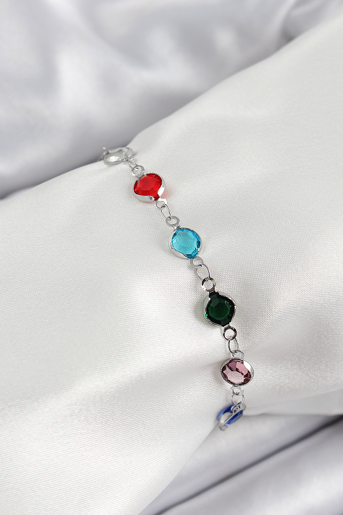 Pirinç Gümüş Renk Karışık Renk Zirkon Taşlı Kadın Bileklik