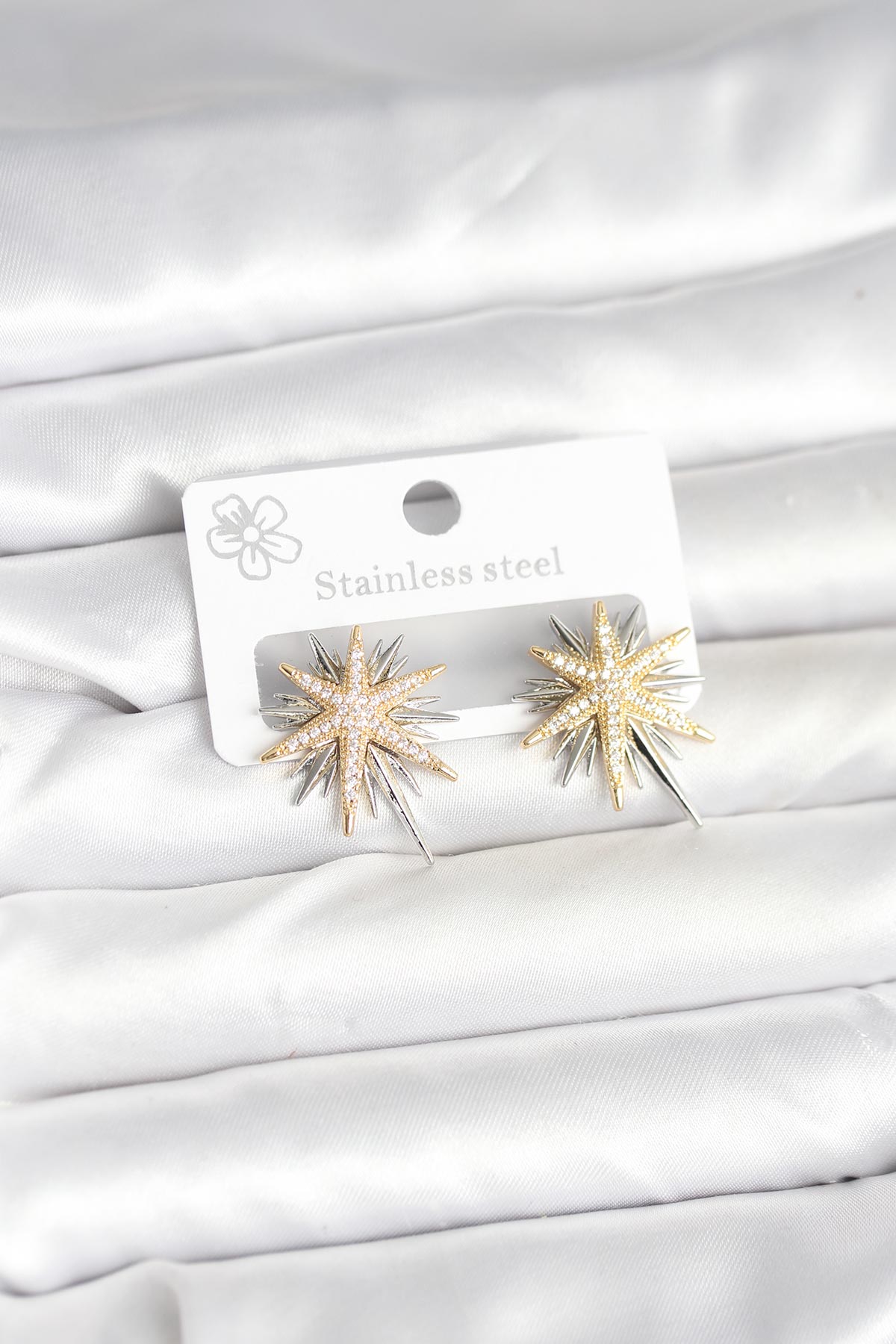 Pirinç Gümüş Renk Kutup Yıldızı Kadın Küpe