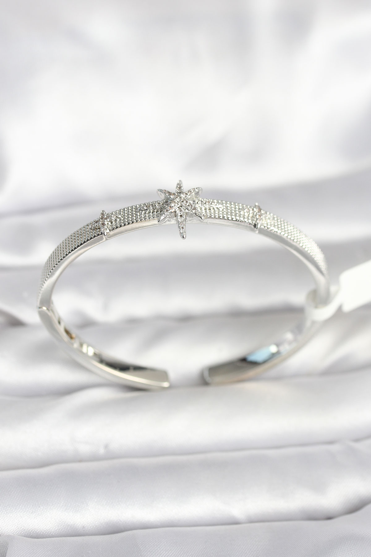Pirinç Gümüş Renk Kutup Yıldızı Model Kadın Kelepçe Bileklik