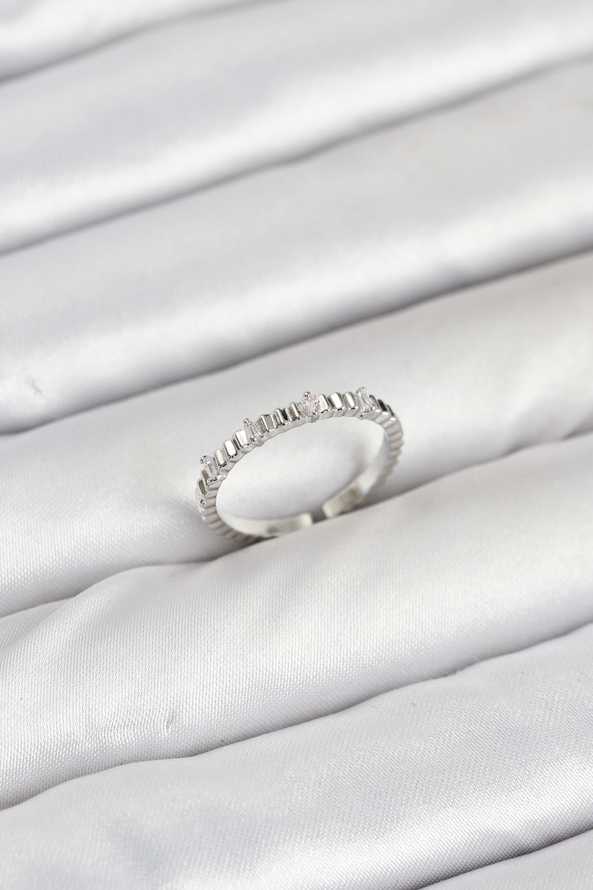 Pirinç Gümüş Renk Lazer Kesim Kadın Yüzük