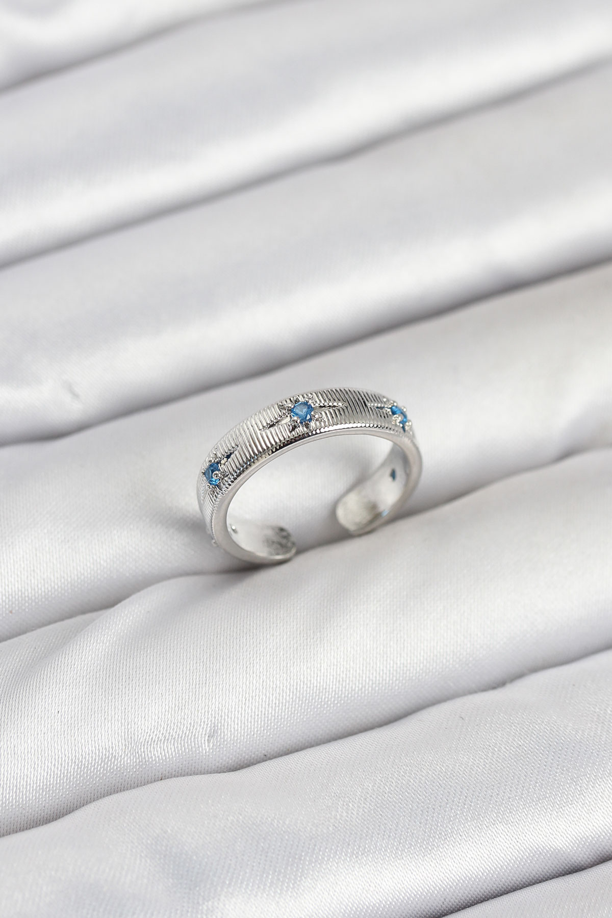 Pirinç Gümüş Renk Mavi Zirkon Taşlı Kutup Yıldızı Model Kadın Yüzük