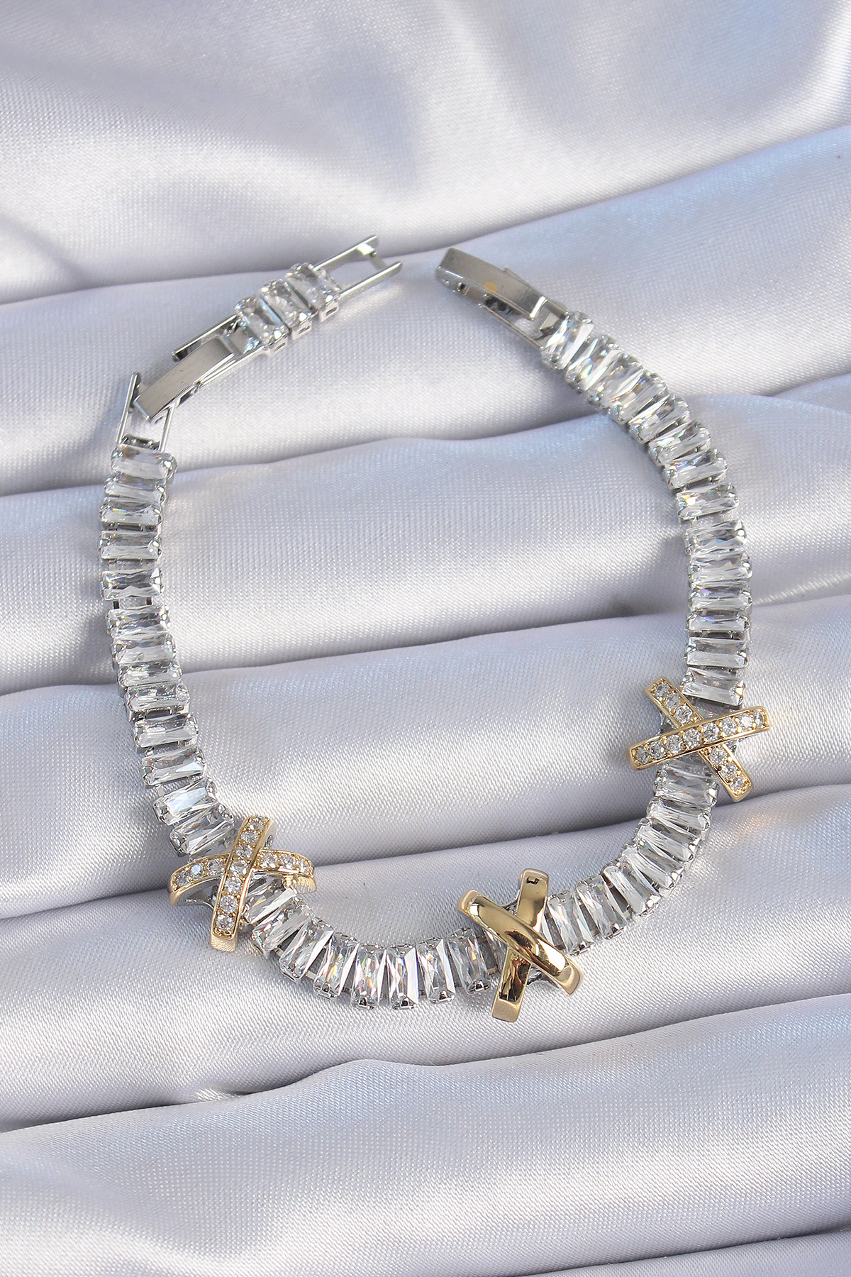 Pirinç Gümüş Renk Taşlı Su Yolu Model VİP Seri Kadın Bileklik